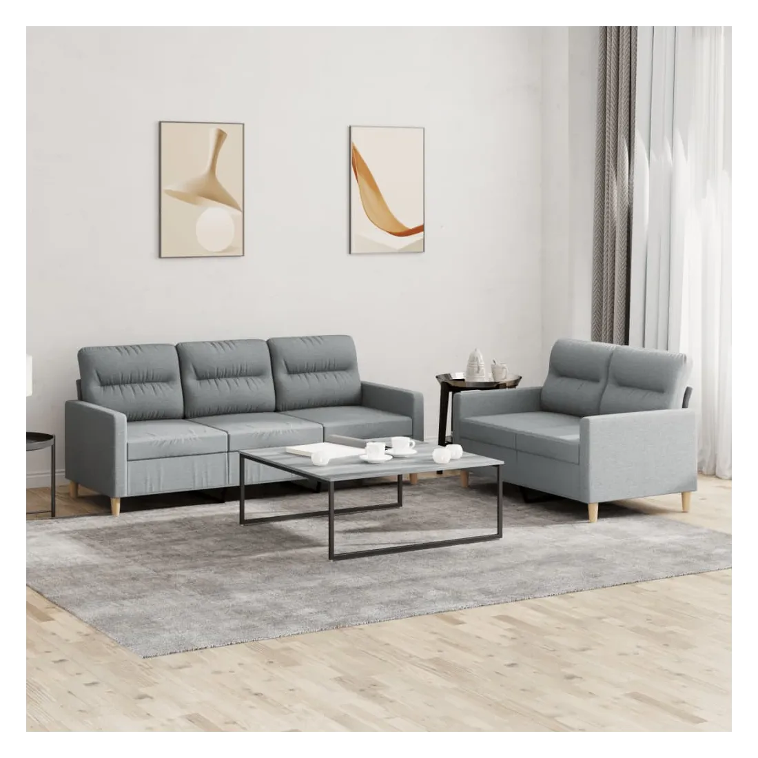 Cet ensemble de canapés est un excellent endroit pour discuter, lire, regarder la télévision ou simplement vous détendre. Il est destiné à être un point central de votre maison. Tissu durable : le tissu présente un aspect simple et épuré tout en restant respirant et durable.Structure robuste et stable : la structure en contreplaqué et en métal du canapé assure robustesse et stabilité.Expérience d'assise confortable : le canapé est très confortable grâce au siège et aux accoudoirs épais et rembourrés.