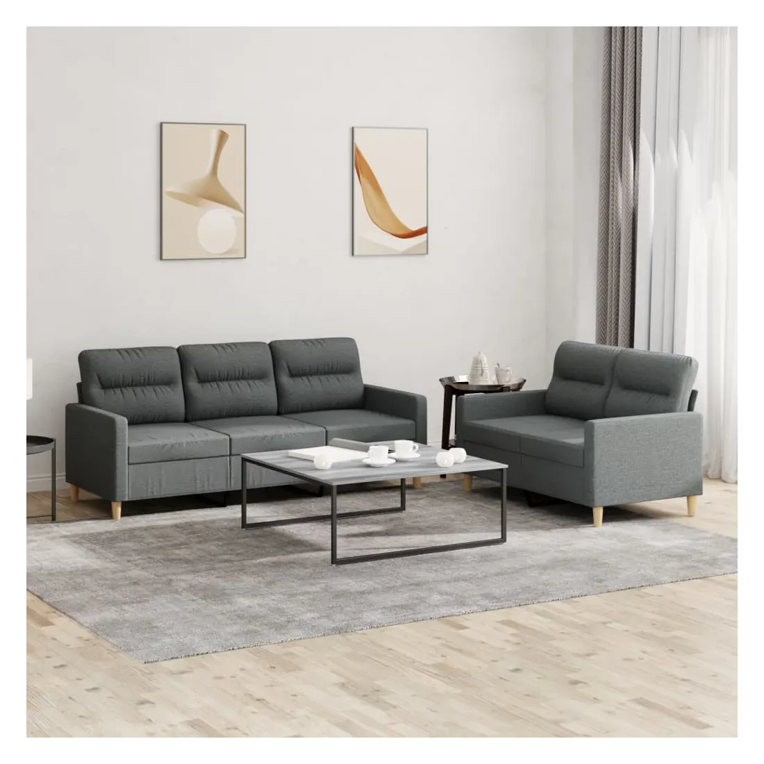 Cet ensemble de canapés est un excellent endroit pour discuter, lire, regarder la télévision ou simplement vous détendre. Il est destiné à être un point central de votre maison. Tissu durable : le tissu présente un aspect simple et épuré tout en restant respirant et durable.Structure robuste et stable : la structure en contreplaqué et en métal du canapé assure robustesse et stabilité.Expérience d'assise confortable : le canapé est très confortable grâce au siège et aux accoudoirs épais et rembourrés.