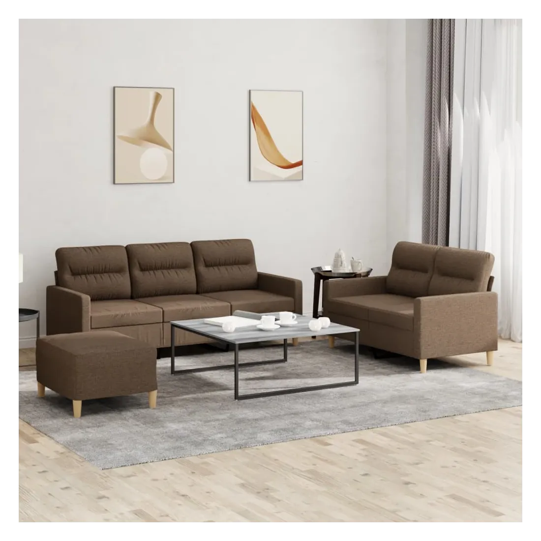 Cet ensemble de canapés est un excellent endroit pour discuter, lire, regarder la télévision ou simplement vous détendre. Il est destiné à être un point central de votre maison. Tissu durable : le tissu présente un aspect simple et épuré tout en restant respirant et durable.Structure robuste et stable : la structure en contreplaqué et en métal du canapé assure robustesse et stabilité.Expérience d'assise confortable : le canapé est très confortable grâce au siège et aux accoudoirs épais et rembourrés.Pouf polyvalent : ce repose-pied convient pour reposer vos pieds lorsque vous êtes allongé dans un canapé, ou pour vous offrir un siège supplémentaire dans votre pièce. De plus, le design simple et la taille compacte le rendent idéal pour presque tous vos espaces de vie.