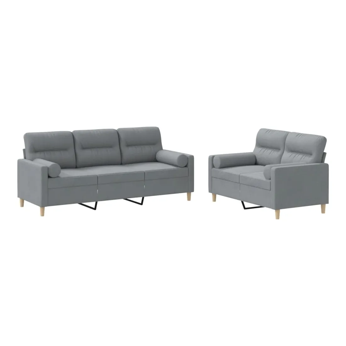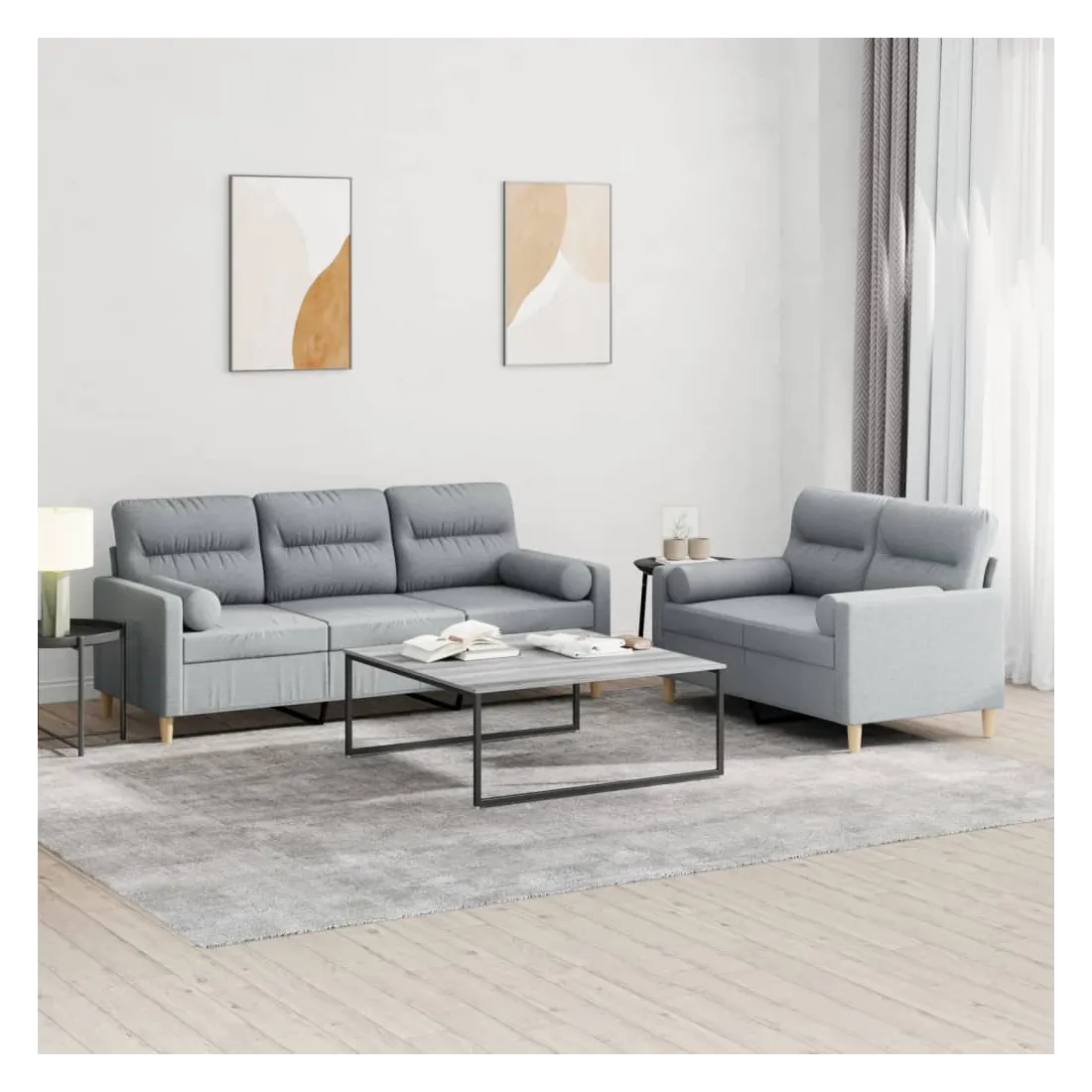 Cet ensemble de canapés est un excellent endroit pour discuter, lire, regarder la télévision ou simplement vous détendre. Il est destiné à être un point central de votre maison. Tissu durable : le tissu présente un aspect simple et épuré tout en restant respirant et durable.Structure robuste et stable : la structure en contreplaqué et en métal du canapé assure robustesse et stabilité.Expérience d'assise confortable : le canapé est très confortable grâce au siège et aux accoudoirs épais et rembourrés.Oreillers cylindriques pratiques : ces oreillers cylindriques non seulement embellissent votre décor, mais ils peuvent également apporter un confort supplémentaire lorsque vous êtes assis ou allongé.