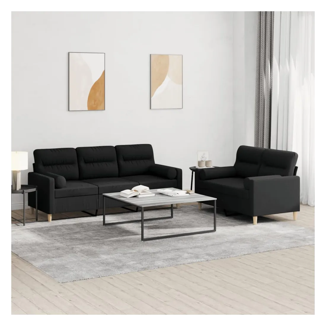 Cet ensemble de canapés est un excellent endroit pour discuter, lire, regarder la télévision ou simplement vous détendre. Il est destiné à être un point central de votre maison. Tissu durable : le tissu présente un aspect simple et épuré tout en restant respirant et durable.Structure robuste et stable : la structure en contreplaqué et en métal du canapé assure robustesse et stabilité.Expérience d'assise confortable : le canapé est très confortable grâce au siège et aux accoudoirs épais et rembourrés.Oreillers cylindriques pratiques : ces oreillers cylindriques non seulement embellissent votre décor, mais ils peuvent également apporter un confort supplémentaire lorsque vous êtes assis ou allongé.