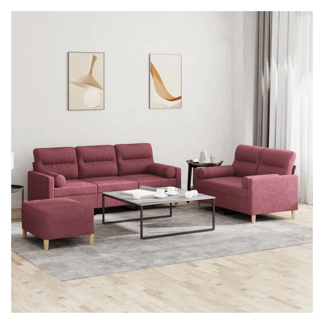 Cet ensemble de canapés est un excellent endroit pour discuter, lire, regarder la télévision ou simplement vous détendre. Il est destiné à être un point central de votre maison. Tissu durable : le tissu présente un aspect simple et épuré tout en restant respirant et durable.Structure robuste et stable : la structure en contreplaqué et en métal du canapé assure robustesse et stabilité.Expérience d'assise confortable : le canapé est très confortable grâce au siège et aux accoudoirs épais et rembourrés.Oreillers cylindriques pratiques : ces oreillers cylindriques non seulement embellissent votre décor, mais ils peuvent également apporter un confort supplémentaire lorsque vous êtes assis ou allongé.Pouf polyvalent : ce repose-pied convient pour reposer vos pieds lorsque vous êtes allongé dans un canapé, ou pour vous offrir un siège supplémentaire dans votre pièce. De plus, le design simple et la taille compacte le rendent idéal pour presque tous vos espaces de vie.