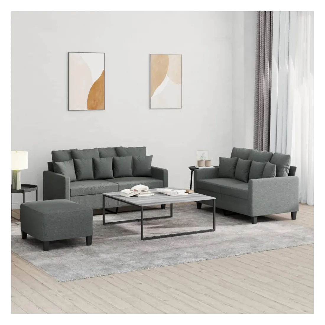 Cet ensemble de canapés est un excellent endroit pour discuter, lire, regarder la télévision ou simplement vous détendre. Il est destiné à être un point central de votre maison. Tissu durable : le tissu présente un aspect simple et épuré tout en restant respirant et durable.Structure robuste et stable : la structure en contreplaqué et en métal du canapé assure robustesse et stabilité. Expérience d'assise confortable : le canapé est très confortable avec le siège, les accoudoirs et les oreillers de dossier bien rembourrés. Pouf polyvalent : ce repose-pied convient pour reposer vos pieds lorsque vous êtes allongé dans un canapé ou pour vous offrir un siège supplémentaire dans votre pièce. De plus, le design simple et la taille compacte le rendent idéal pour presque tous vos espaces de vie.