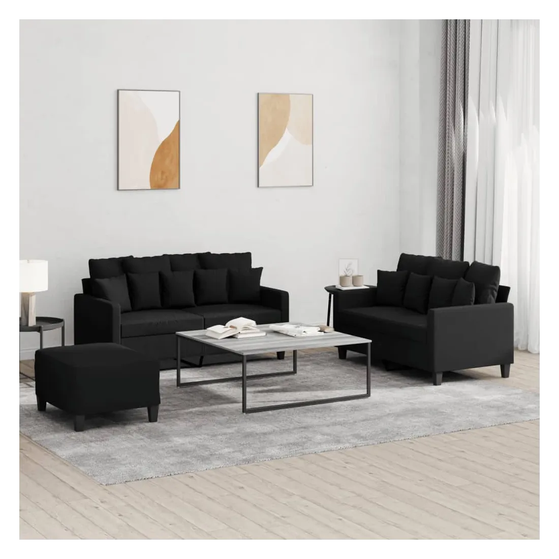 Cet ensemble de canapés est un excellent endroit pour discuter, lire, regarder la télévision ou simplement vous détendre. Il est destiné à être un point central de votre maison. Tissu durable : le tissu présente un aspect simple et épuré tout en restant respirant et durable.Structure robuste et stable : la structure en contreplaqué et en métal du canapé assure robustesse et stabilité. Expérience d'assise confortable : le canapé est très confortable avec le siège, les accoudoirs et les oreillers de dossier bien rembourrés. Pouf polyvalent : ce repose-pied convient pour reposer vos pieds lorsque vous êtes allongé dans un canapé ou pour vous offrir un siège supplémentaire dans votre pièce. De plus, le design simple et la taille compacte le rendent idéal pour presque tous vos espaces de vie.