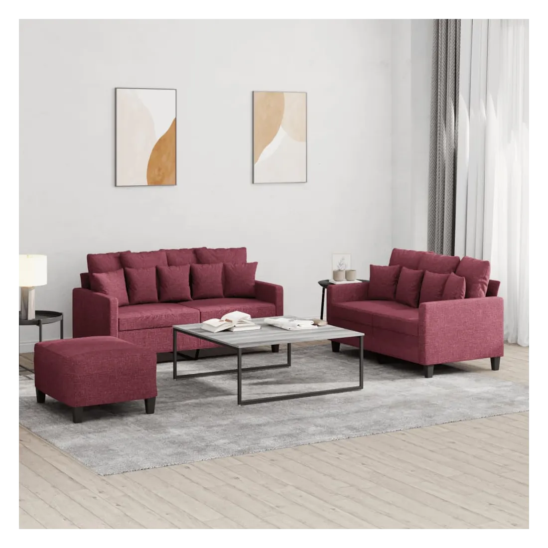 Cet ensemble de canapés est un excellent endroit pour discuter, lire, regarder la télévision ou simplement vous détendre. Il est destiné à être un point central de votre maison. Tissu durable : le tissu présente un aspect simple et épuré tout en restant respirant et durable.Structure robuste et stable : la structure en contreplaqué et en métal du canapé assure robustesse et stabilité. Expérience d'assise confortable : le canapé est très confortable avec le siège, les accoudoirs et les oreillers de dossier bien rembourrés. Pouf polyvalent : ce repose-pied convient pour reposer vos pieds lorsque vous êtes allongé dans un canapé ou pour vous offrir un siège supplémentaire dans votre pièce. De plus, le design simple et la taille compacte le rendent idéal pour presque tous vos espaces de vie.