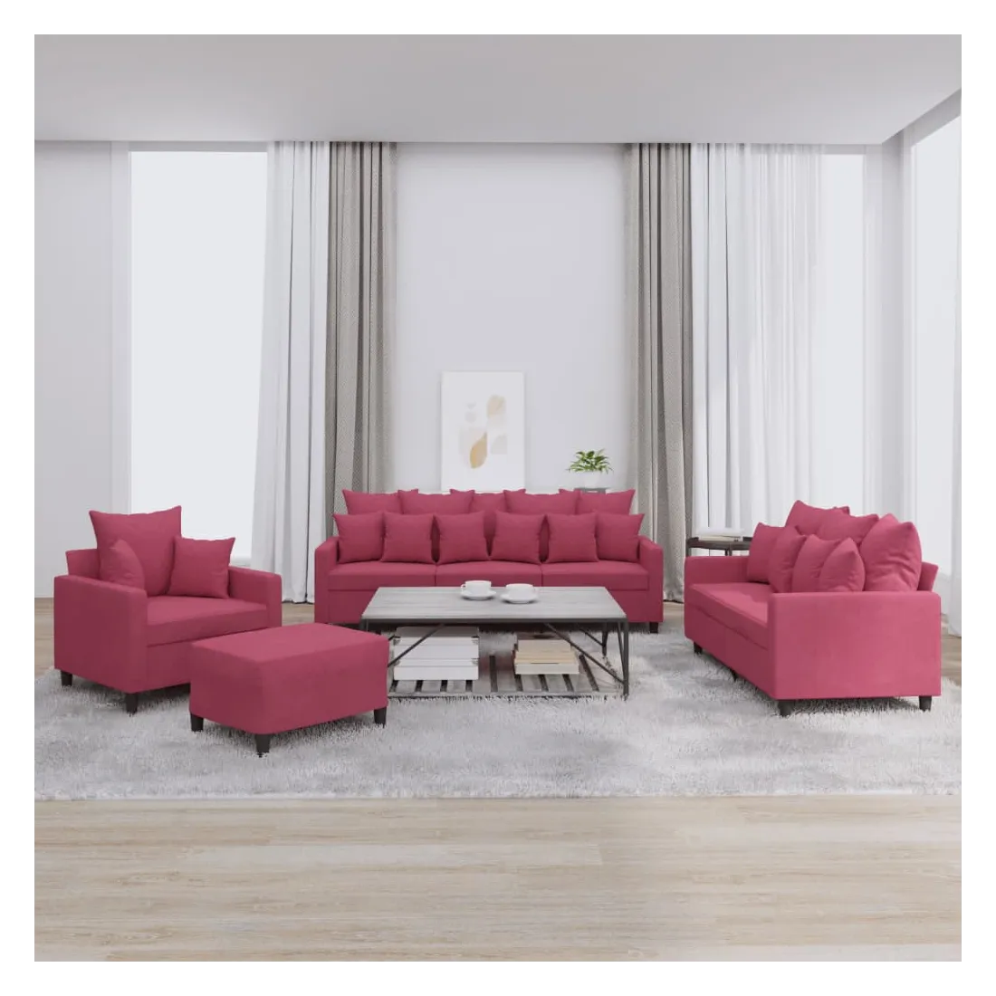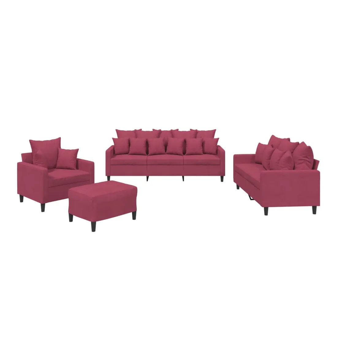 Ensemble de canapés 4 pcs avec coussins Rouge bordeaux Velours