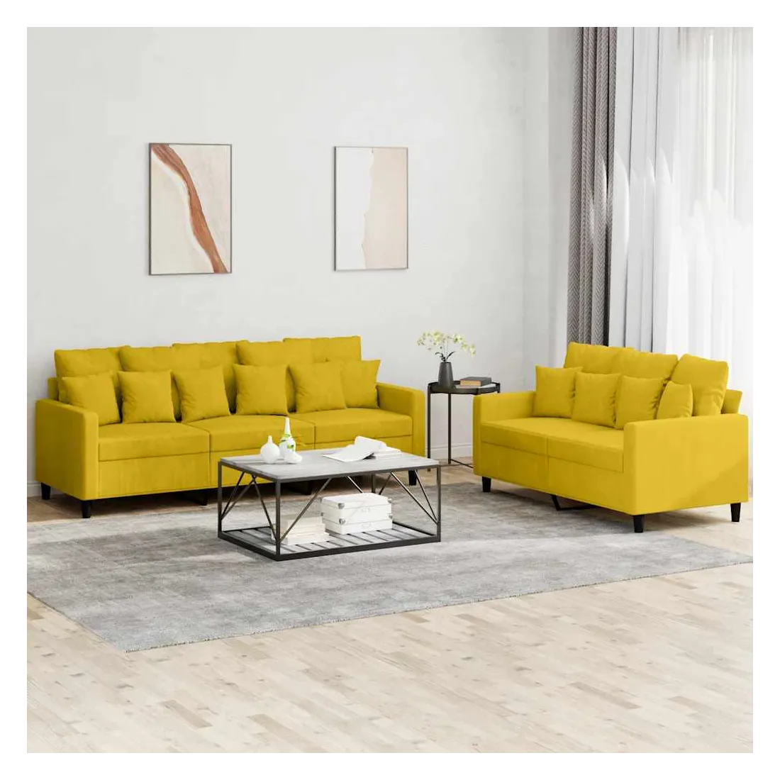 Cet ensemble de canapés est un excellent endroit pour discuter, lire, regarder la télévision ou simplement vous détendre. Il est destiné à être un point central de votre maison. Velours doux : le velours est un tissu doux et confortable, agréable au toucher.Structure robuste et stable : la structure en contreplaqué et en métal du canapé assure robustesse et stabilité. Expérience d'assise confortable : le canapé est très confortable avec le siège, les accoudoirs et les oreillers de dossier bien rembourrés.