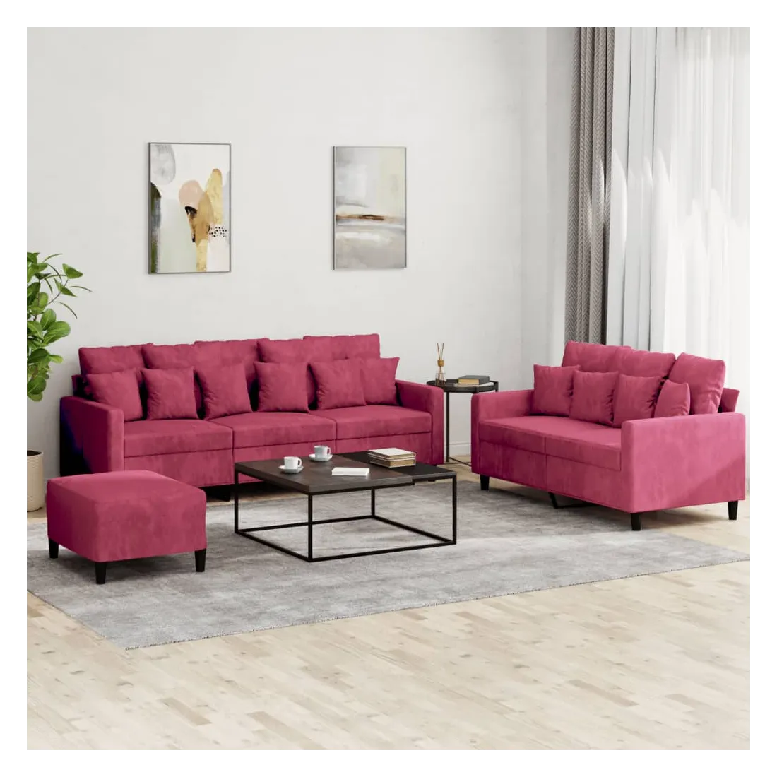 Cet ensemble de canapés est un excellent endroit pour discuter, lire, regarder la télévision ou simplement vous détendre. Il est destiné à être un point central de votre maison. Velours doux : le velours est un tissu doux et confortable, agréable au toucher.Structure robuste et stable : la structure en contreplaqué et en métal du canapé assure robustesse et stabilité. Expérience d'assise confortable : le canapé est très confortable avec le siège, les accoudoirs et les oreillers de dossier bien rembourrés.Pouf polyvalent : ce repose-pied convient pour reposer vos pieds lorsque vous êtes allongé dans un canapé ou pour vous offrir un siège supplémentaire dans votre pièce. De plus, le design simple et la taille compacte le rendent idéal pour presque tous vos espaces de vie.