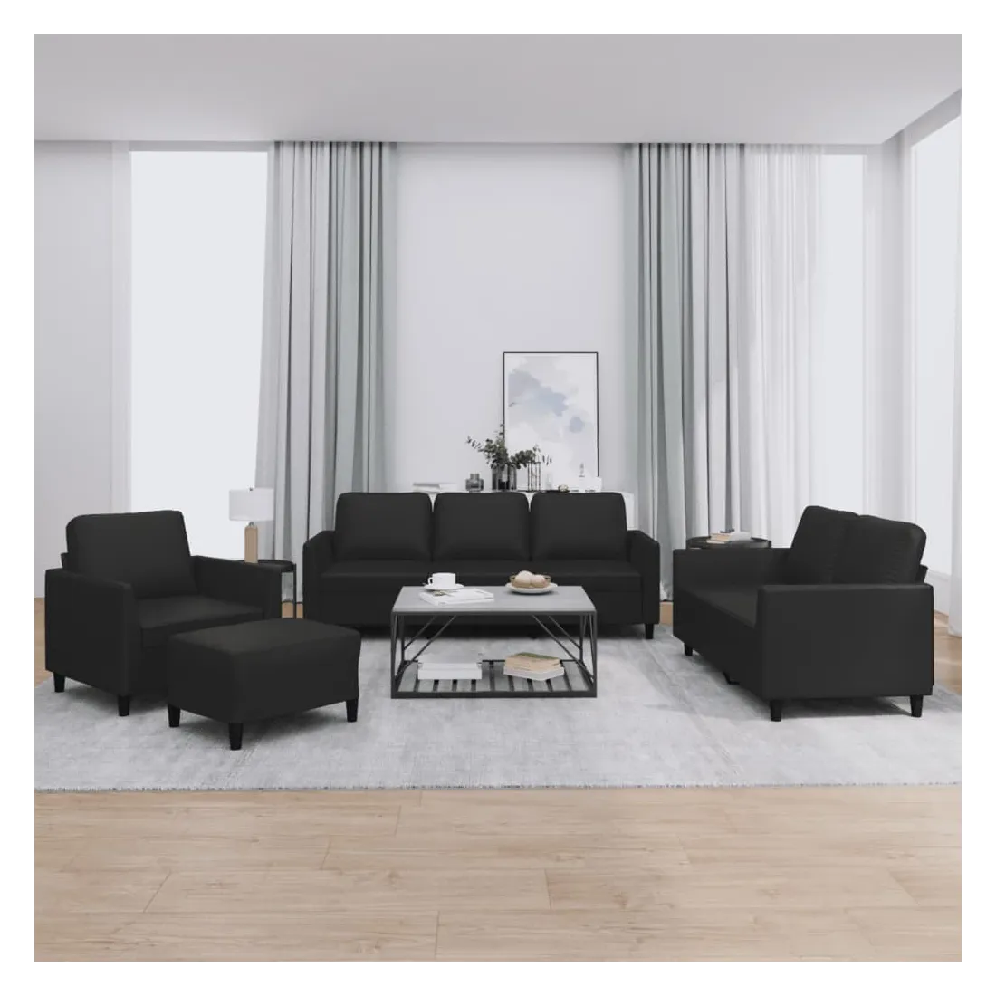 Cet ensemble de canapés est un excellent endroit pour discuter, lire, regarder la télévision ou simplement vous détendre. Il est destiné à être un point central de votre maison. Similicuir durable : le similicuir de qualité supérieure est un matériau très durable. Il est résistant aux taches, ce qui le rend facile à nettoyer avec un chiffon humide. La surface lisse donne également un aspect luxueux et la beauté du cuir véritable.Structure robuste et stable : la structure en contreplaqué et en métal du canapé assure robustesse et stabilité. Expérience d'assise confortable : le canapé est très confortable avec le siège, les accoudoirs et les oreillers de dossier bien rembourrés.Pouf polyvalent : ce repose-pied convient pour reposer vos pieds lorsque vous êtes allongé dans un canapé ou pour vous offrir un siège supplémentaire dans votre pièce. De plus, le design simple et la taille compacte le rendent idéal pour presque tous vos espaces de vie.