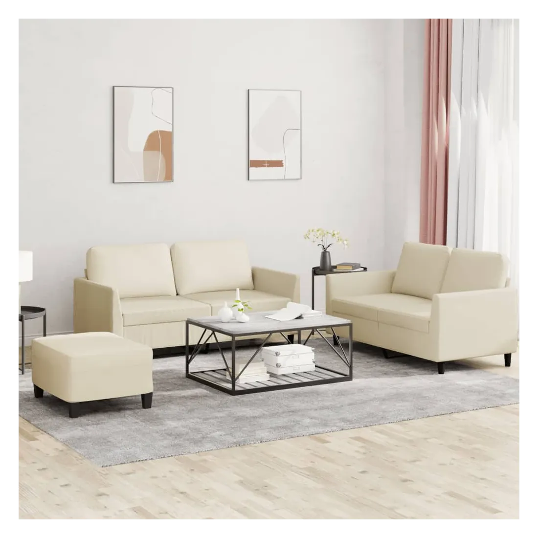 Cet ensemble de canapés est un excellent endroit pour discuter, lire, regarder la télévision ou simplement vous détendre. Il est destiné à être un point central de votre maison. Similicuir durable : le similicuir de qualité supérieure est un matériau très durable. Il est résistant aux taches, ce qui le rend facile à nettoyer avec un chiffon humide. La surface lisse donne également un aspect luxueux et la beauté du cuir véritable.Structure robuste et stable : la structure en contreplaqué et en métal du canapé assure robustesse et stabilité. Expérience d'assise confortable : le canapé est très confortable avec le siège, les accoudoirs et les oreillers de dossier bien rembourrés.Pouf polyvalent : ce repose-pied convient pour reposer vos pieds lorsque vous êtes allongé dans un canapé ou pour vous offrir un siège supplémentaire dans votre pièce. De plus, le design simple et la taille compacte le rendent idéal pour presque tous vos espaces de vie.