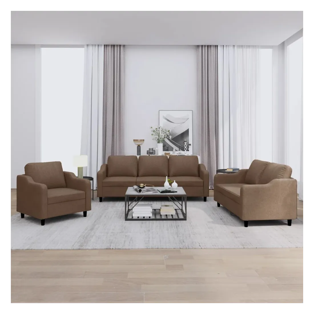 Ensemble de canapés 3 pcs avec coussins Marron Tissu
