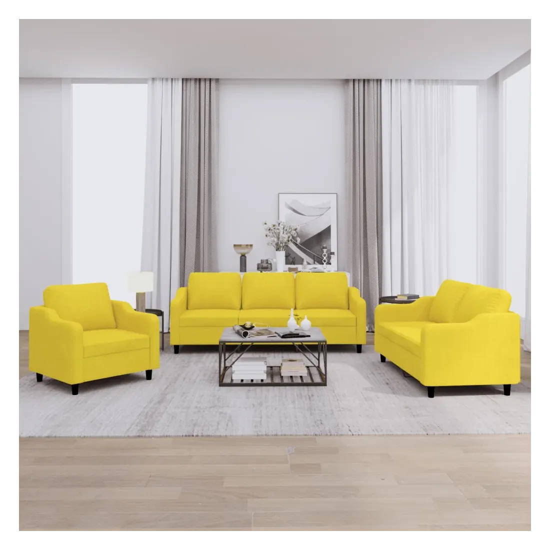 Ensemble de canapés 3 pcs avec coussins Jaune clair Tissu