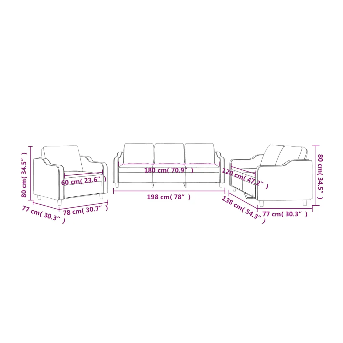 Cet ensemble de canapés est un excellent endroit pour discuter, lire, regarder la télévision ou simplement vous détendre. Il est destiné à être un point central de votre maison. Tissu durable : le tissu présente un aspect simple et épuré tout en restant respirant et durable. Structure robuste et stable : la structure en contreplaqué et en métal du canapé assure robustesse et stabilité. Expérience d'assise confortable : le canapé est très confortable avec le siège, les accoudoirs et les oreillers de dossier bien rembourrés.