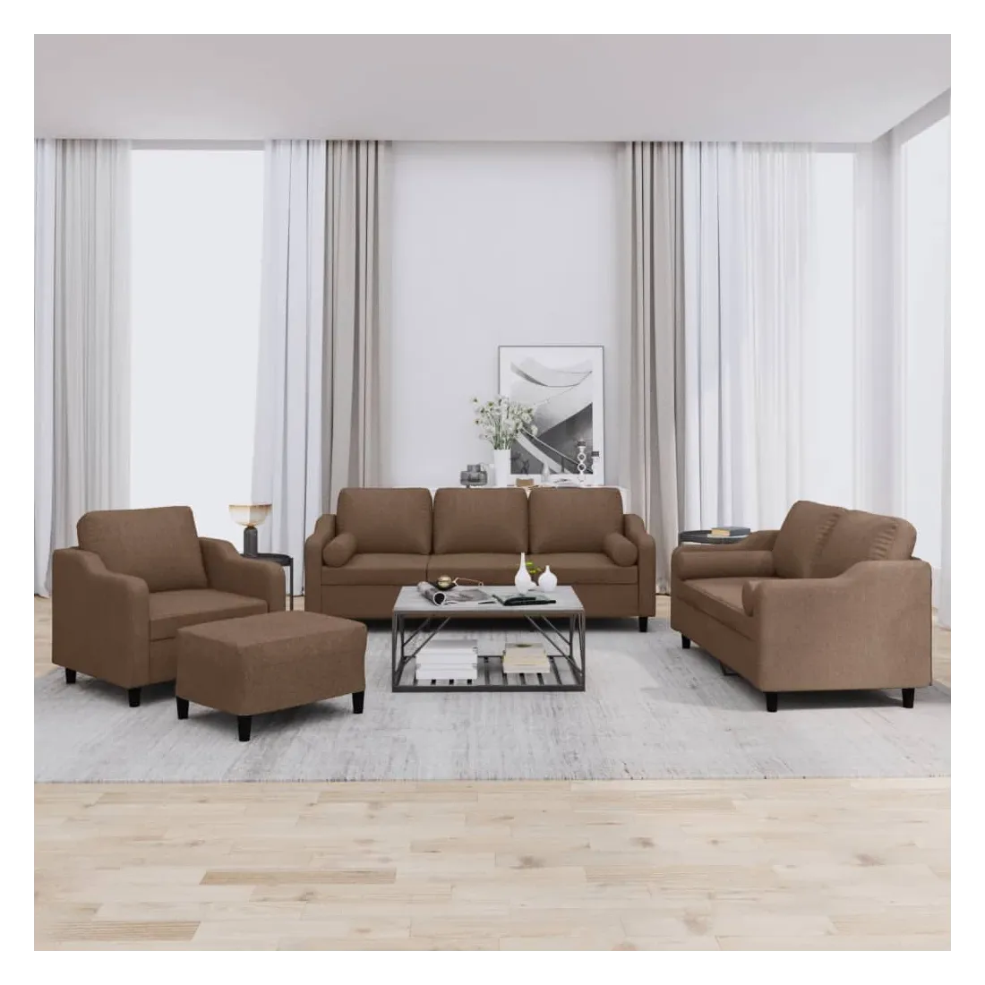 Ensemble de canapés 4 pcs avec coussins marron tissu