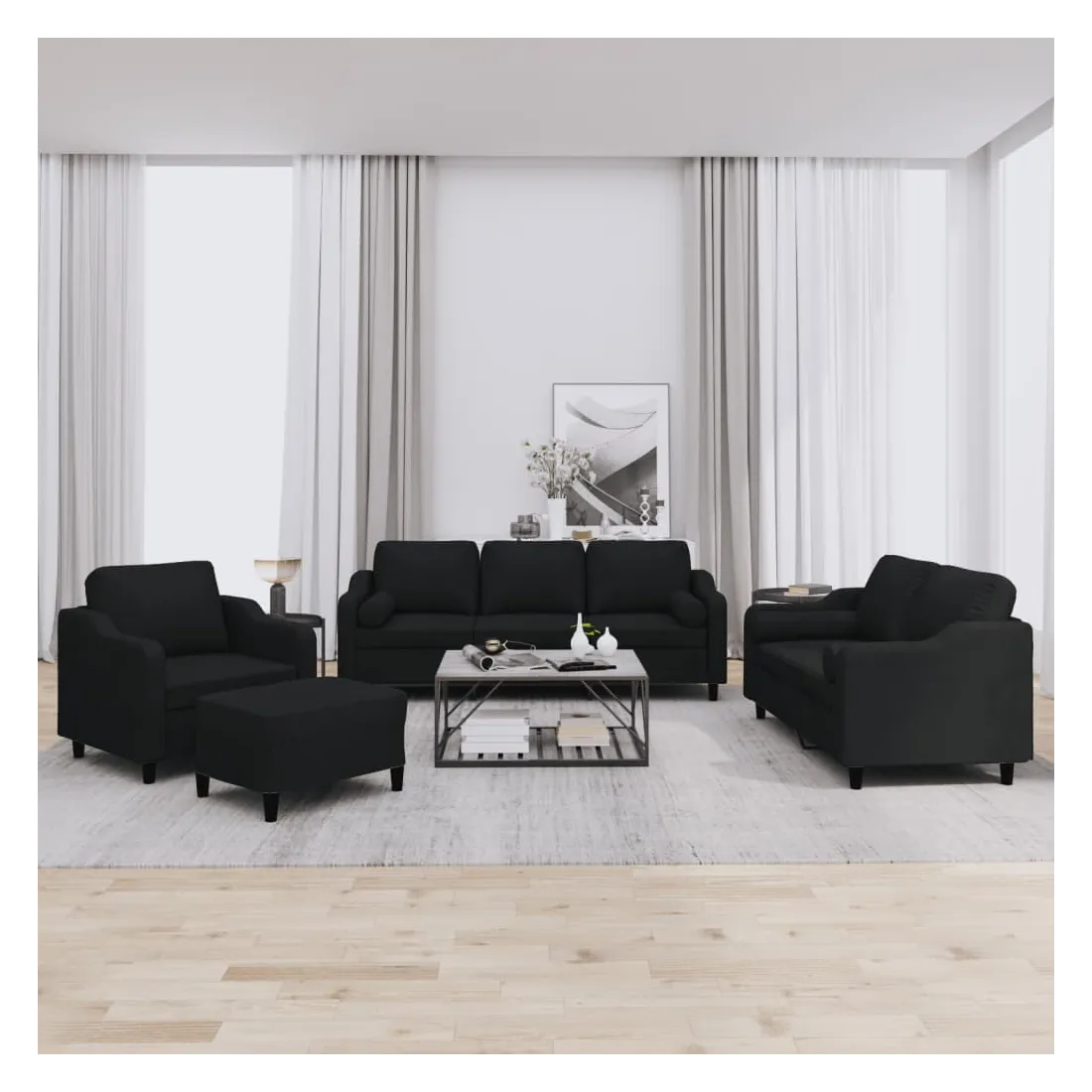 Cet ensemble de canapés est un excellent endroit pour discuter, lire, regarder la télévision ou simplement vous détendre. Il est destiné à être un point central de votre maison. Tissu durable : le tissu présente un aspect simple et épuré tout en restant respirant et durable.Structure robuste et stable : la structure en contreplaqué et en métal du canapé assure robustesse et stabilité. Expérience d'assise confortable : le canapé est très confortable avec le siège, les accoudoirs et les oreillers de dossier bien rembourrés. Oreillers cylindriques pratiques : ces oreillers cylindriques non seulement embellissent votre décor mais ils peuvent également apporter un confort supplémentaire lorsque vous êtes assis ou allongé. Pouf polyvalent : ce repose-pied convient pour reposer vos pieds lorsque vous êtes allongé dans un canapé ou pour vous offrir un siège supplémentaire dans votre pièce. De plus, le design simple et la taille compacte le rendent idéal pour presque tous vos espaces de vie.
