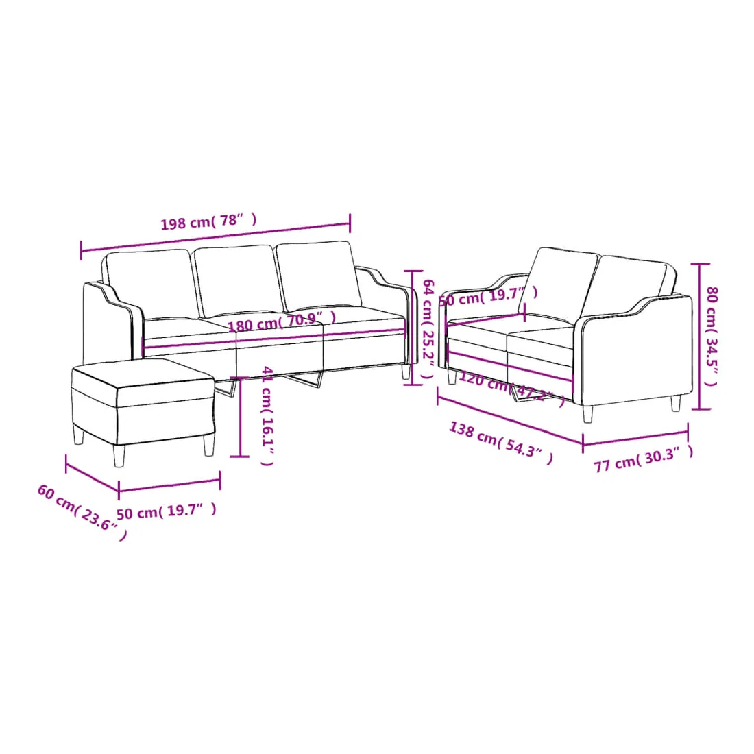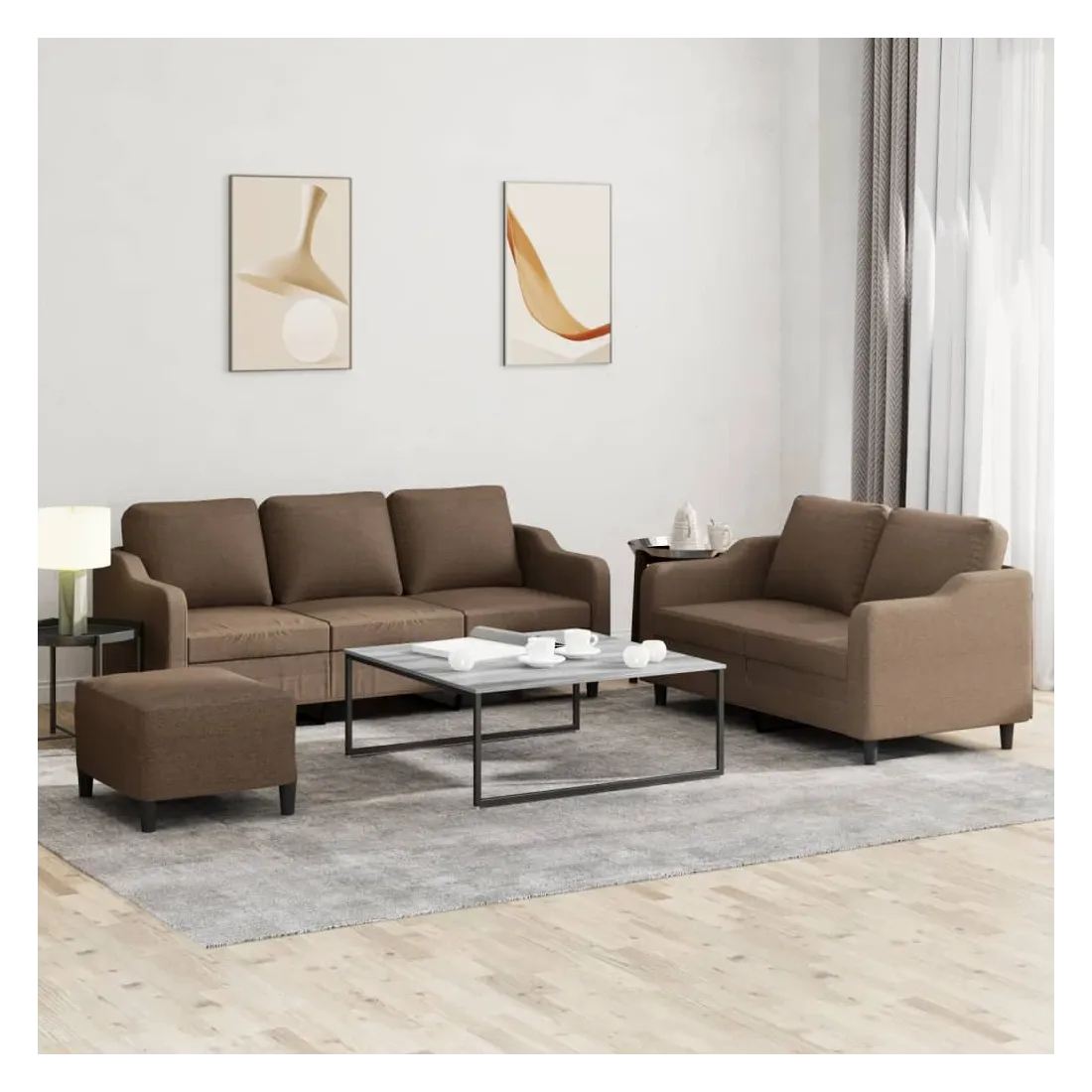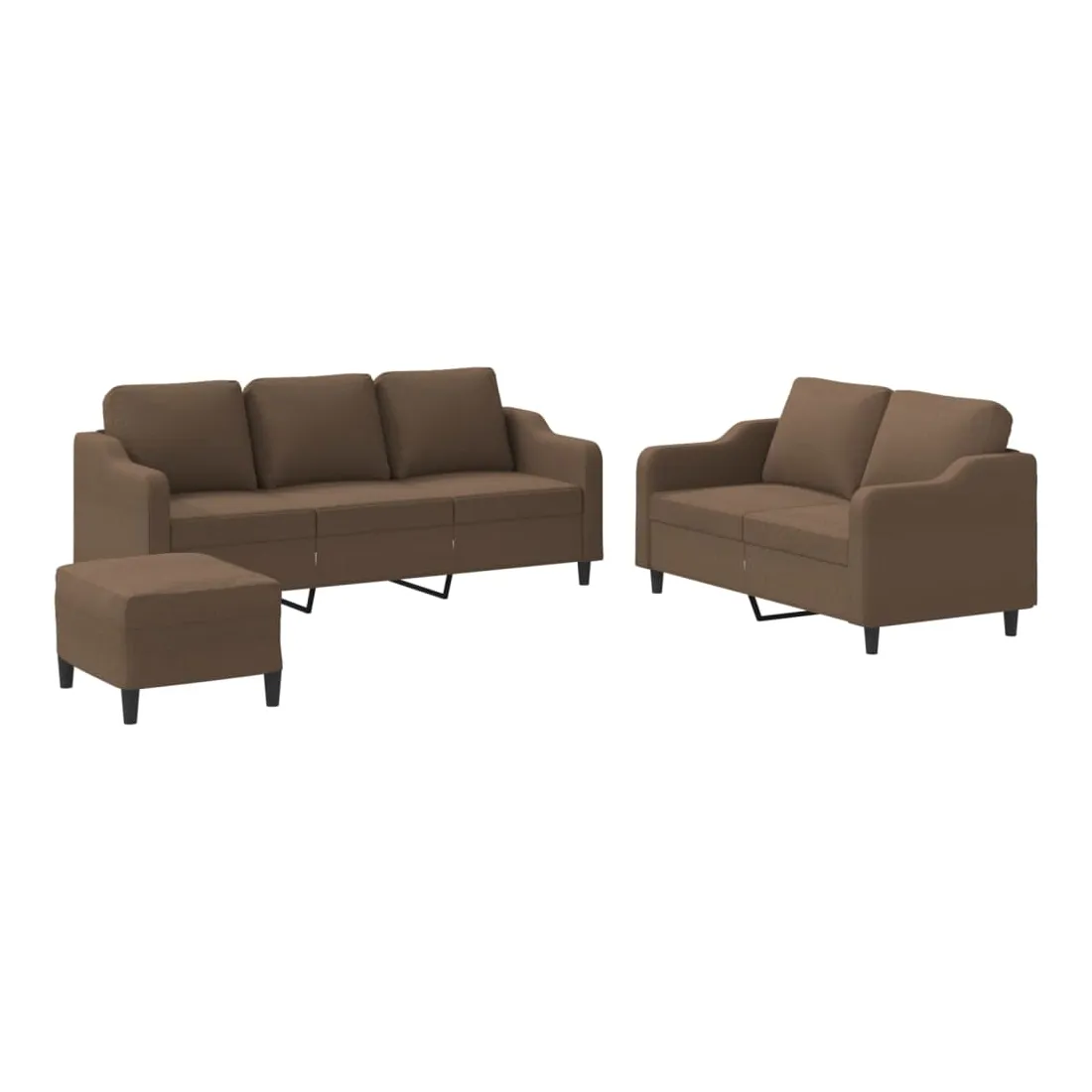 vidaXLCet ensemble de canapés est un excellent endroit pour discuter, lire, regarder la télévision ou simplement vous détendre. Il est destiné à être un point central de votre maison. Tissu durable : le tissu présente un aspect simple et épuré tout en restant respirant et durable.Structure robuste et stable : la structure en contreplaqué et en métal du canapé assure robustesse et stabilité. Expérience d'assise confortable : le canapé est très confortable avec le siège, les accoudoirs et les oreillers de dossier bien rembourrés. Pouf polyvalent : ce repose-pied convient pour reposer vos pieds lorsque vous êtes allongé dans un canapé ou pour vous offrir un siège supplémentaire dans votre pièce. De plus, le design simple et la taille compacte le rendent idéal pour presque tous vos espaces de vie.