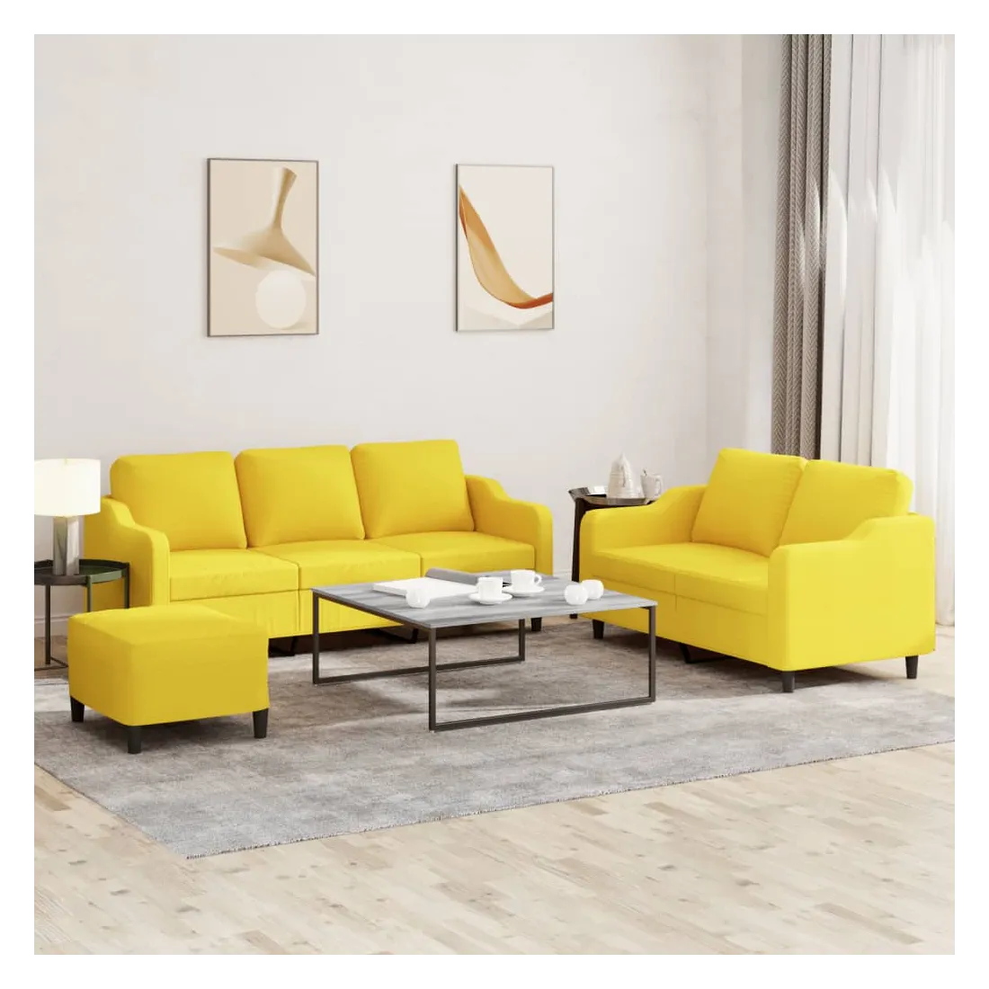 Ensemble de canapés 3 pcs avec coussins Jaune clair Tissu