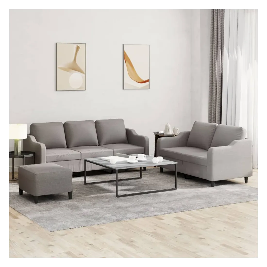 Cet ensemble de canapés est un excellent endroit pour discuter, lire, regarder la télévision ou simplement vous détendre. Il est destiné à être un point central de votre maison. Tissu durable : le tissu présente un aspect simple et épuré tout en restant respirant et durable.Structure robuste et stable : la structure en contreplaqué et en métal du canapé assure robustesse et stabilité. Expérience d'assise confortable : le canapé est très confortable avec le siège, les accoudoirs et les oreillers de dossier bien rembourrés. Pouf polyvalent : ce repose-pied convient pour reposer vos pieds lorsque vous êtes allongé dans un canapé ou pour vous offrir un siège supplémentaire dans votre pièce. De plus, le design simple et la taille compacte le rendent idéal pour presque tous vos espaces de vie.