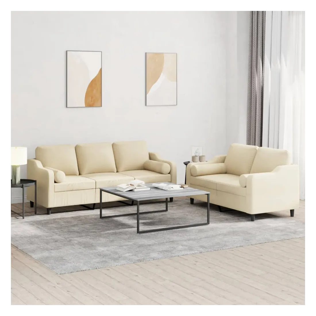Cet ensemble de canapés est un excellent endroit pour discuter, lire, regarder la télévision ou simplement vous détendre. Il est destiné à être un point central de votre maison. Tissu durable : le tissu présente un aspect simple et épuré tout en restant respirant et durable.Structure robuste et stable : la structure en contreplaqué et en métal du canapé assure robustesse et stabilité. Expérience d'assise confortable : le canapé est très confortable avec le siège, les accoudoirs et les oreillers de dossier bien rembourrés. Oreillers cylindriques pratiques : ces oreillers cylindriques non seulement embellissent votre décor mais ils peuvent également apporter un confort supplémentaire lorsque vous êtes assis ou allongé.