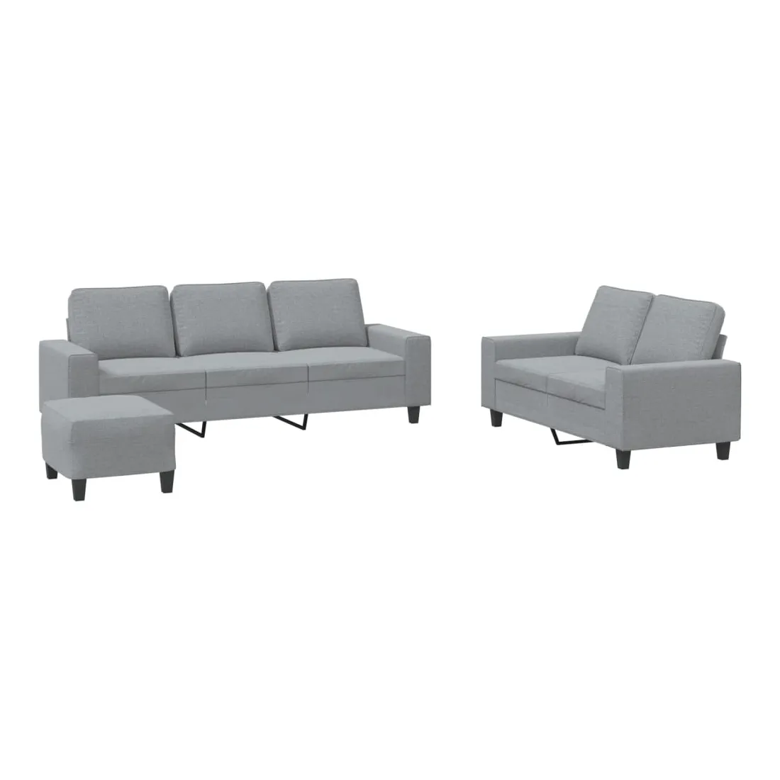 Cet ensemble de canapés est un excellent endroit pour discuter, lire, regarder la télévision ou simplement vous détendre. Il est destiné à être un point central de votre maison. Tissu durable : le tissu présente un aspect simple et épuré tout en restant respirant et durable.Structure robuste et stable : la structure en contreplaqué et en métal du canapé assure robustesse et stabilité.Expérience d'assise confortable : le canapé est très confortable avec le siège, les accoudoirs et les oreillers de dossier bien rembourrés.Pouf polyvalent : ce repose-pied convient pour reposer vos pieds lorsque vous êtes allongé dans un canapé ou pour vous offrir un siège supplémentaire dans votre pièce. De plus, le design simple et la taille compacte le rendent idéal pour presque tous vos espaces de vie.