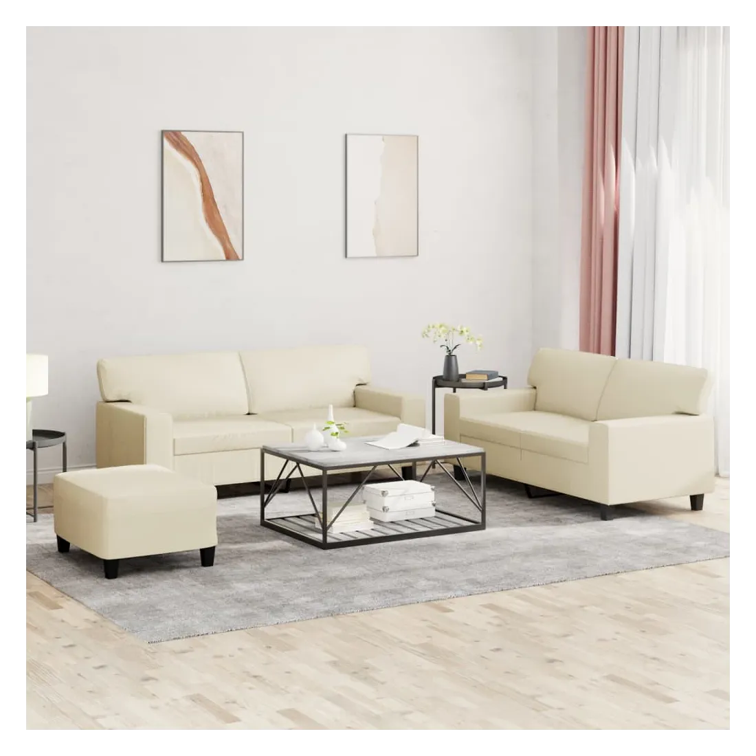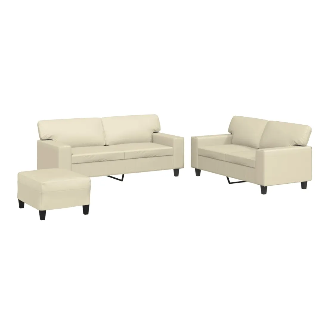 Cet ensemble de canapés est un excellent endroit pour discuter, lire, regarder la télévision ou simplement vous détendre. Il est destiné à être un point central de votre maison. Similicuir durable : le similicuir est un matériau très durable. Il est résistant aux taches, ce qui le rend facile à nettoyer avec un chiffon humide. La surface lisse donne également un aspect luxueux et la beauté du cuir véritable.Structure robuste et stable : la structure en contreplaqué et en métal du canapé assure robustesse et stabilité.Expérience d'assise confortable : le canapé est très confortable avec le siège, les accoudoirs et les oreillers de dossier bien rembourrés.Pouf polyvalent : ce repose-pied convient pour reposer vos pieds lorsque vous êtes allongé dans un canapé ou pour vous offrir un siège supplémentaire dans votre pièce. De plus, le design simple et la taille compacte le rendent idéal pour presque tous vos espaces de vie.
