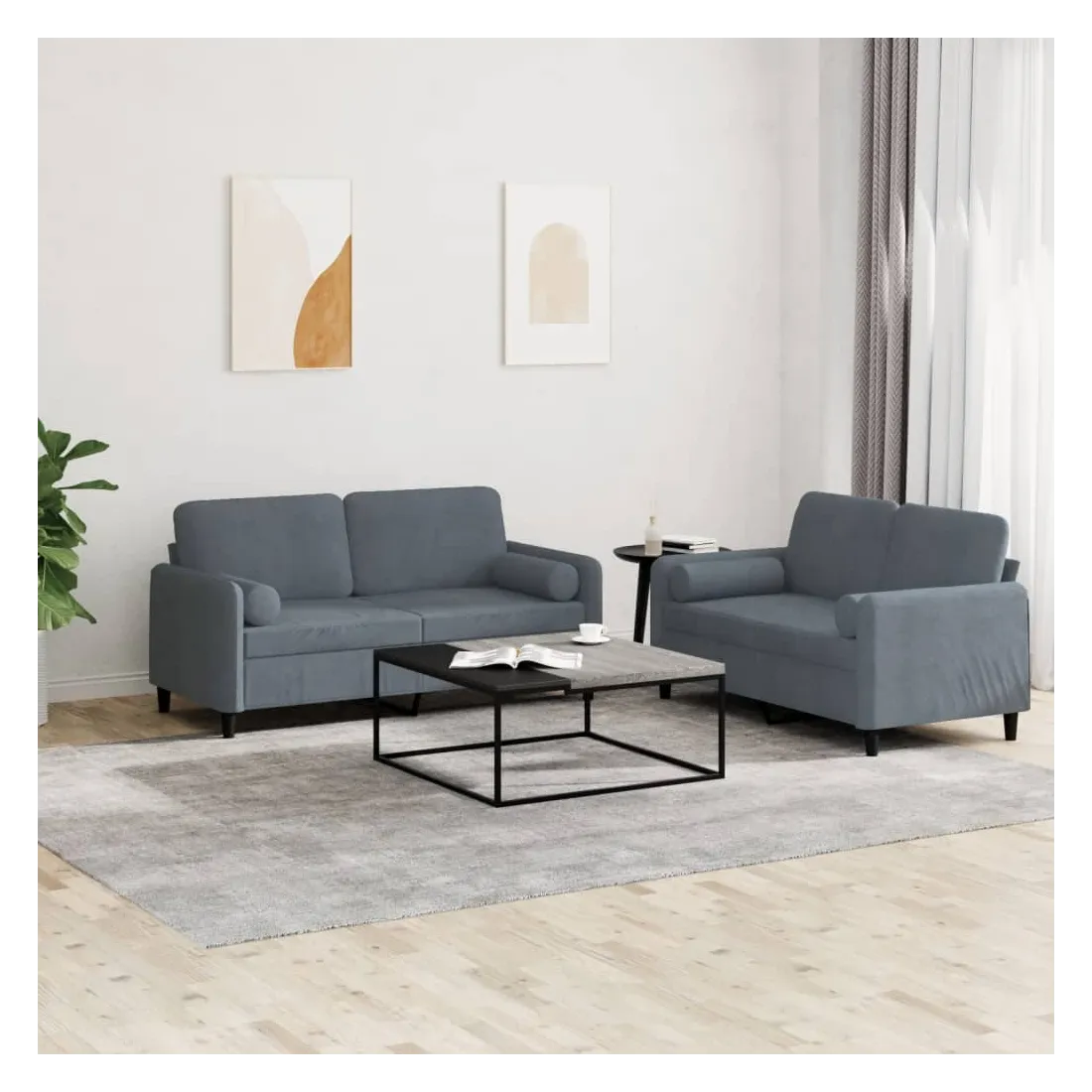 Cet ensemble de canapés est un excellent endroit pour discuter, lire, regarder la télévision ou simplement vous détendre. Il est destiné à être un point central de votre maison. Velours doux : le velours est un tissu doux et confortable, agréable au toucher.Structure robuste et stable : la structure en contreplaqué et en métal du canapé assure robustesse et stabilité.Expérience d'assise confortable : le canapé est très confortable avec le siège, les accoudoirs et les oreillers de dossier bien rembourrés.Oreillers cylindriques pratiques : ces oreillers cylindriques non seulement embellissent votre décor mais ils peuvent également apporter un confort supplémentaire lorsque vous êtes assis ou allongé.