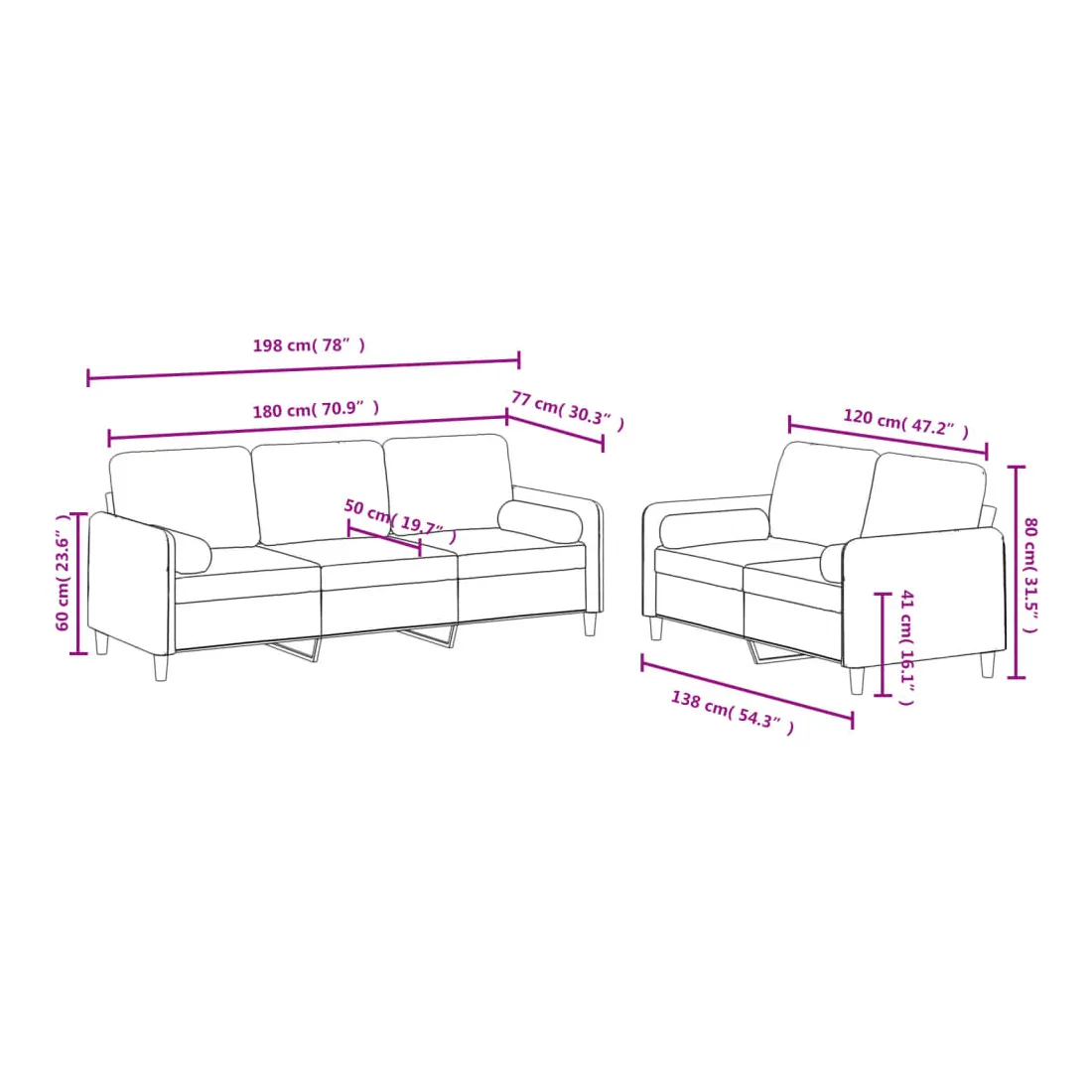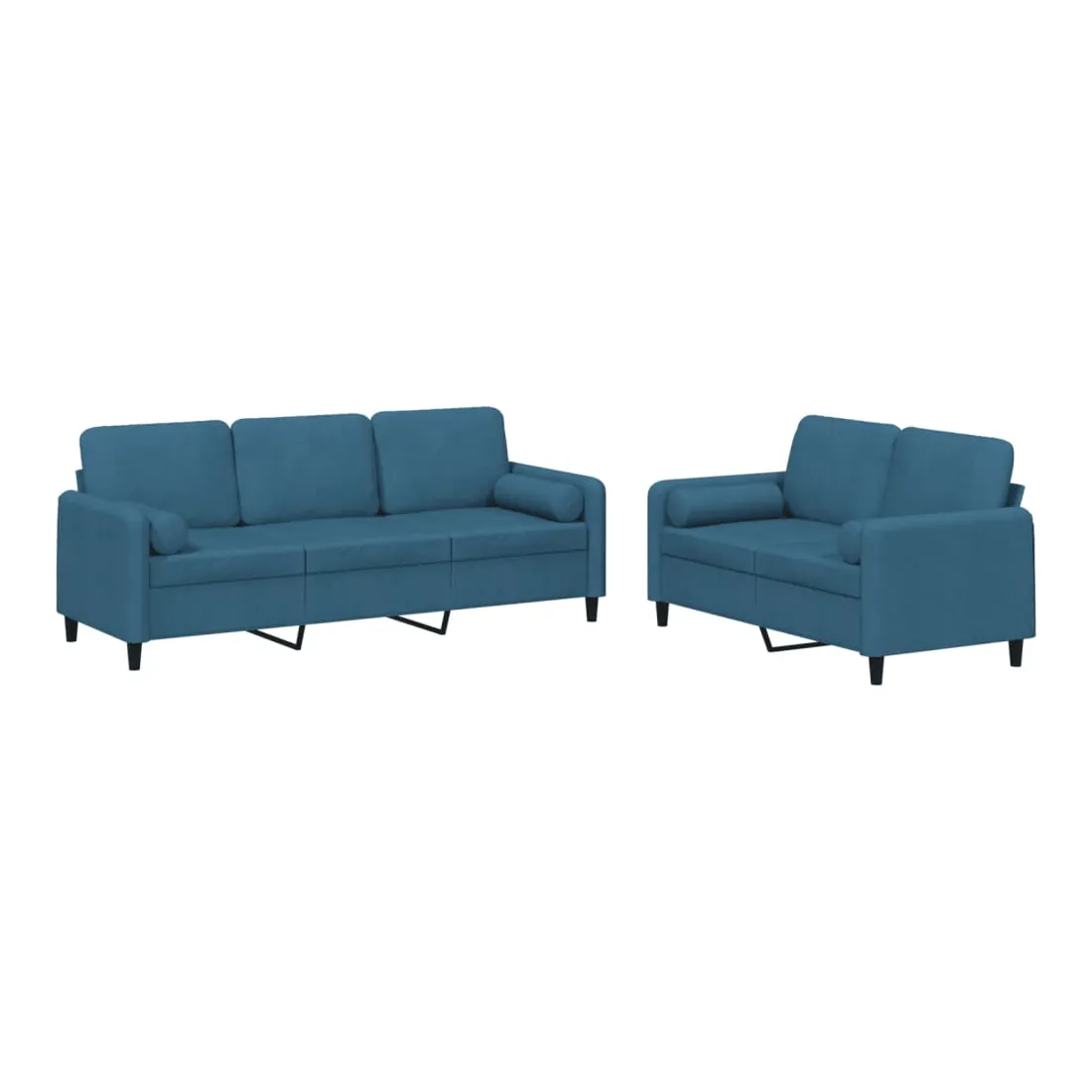 Cet ensemble de canapés est un excellent endroit pour discuter, lire, regarder la télévision ou simplement vous détendre. Il est destiné à être un point central de votre maison. Velours doux : le velours est un tissu doux et confortable, agréable au toucher.Structure robuste et stable : la structure en contreplaqué et en métal du canapé assure robustesse et stabilité.Expérience d'assise confortable : le canapé est très confortable avec le siège, les accoudoirs et les oreillers de dossier bien rembourrés.Oreillers cylindriques pratiques : ces oreillers cylindriques non seulement embellissent votre décor mais ils peuvent également apporter un confort supplémentaire lorsque vous êtes assis ou allongé.