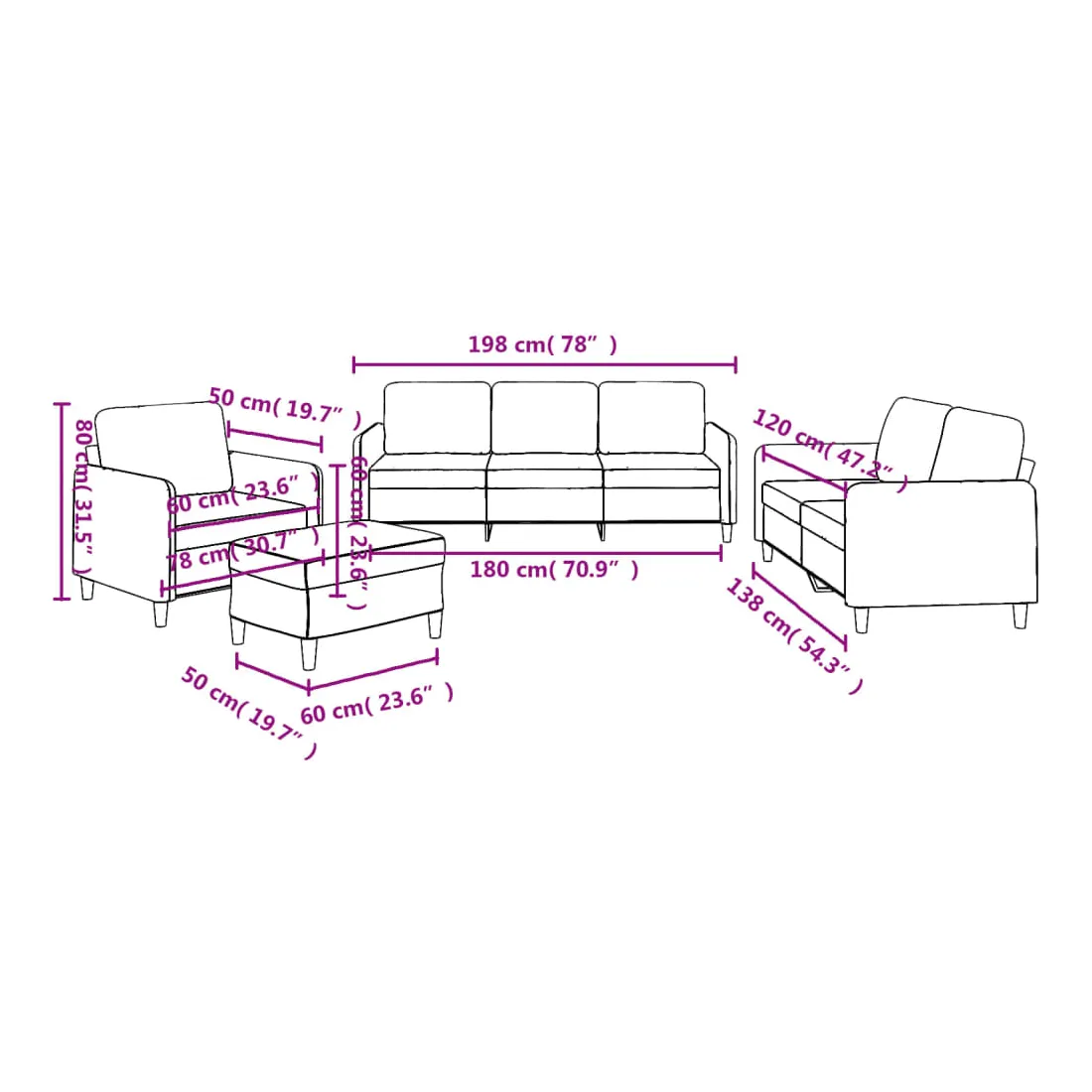 Cet ensemble de canapés est un excellent endroit pour discuter, lire, regarder la télévision ou simplement vous détendre. Il est destiné à être un point central de votre maison. Tissu durable : le tissu présente un aspect simple et épuré tout en restant respirant et durable.Structure robuste et stable : la structure en contreplaqué et en métal du canapé assure robustesse et stabilité.Expérience d'assise confortable : le canapé est très confortable avec le siège, les accoudoirs et les coussins de dossier bien rembourrés.Pouf polyvalent : ce repose-pied convient pour reposer vos pieds lorsque vous êtes allongé dans un canapé ou pour vous offrir un siège supplémentaire dans votre pièce. De plus, le design simple et la taille compacte le rendent idéal pour presque tous vos espaces de vie.