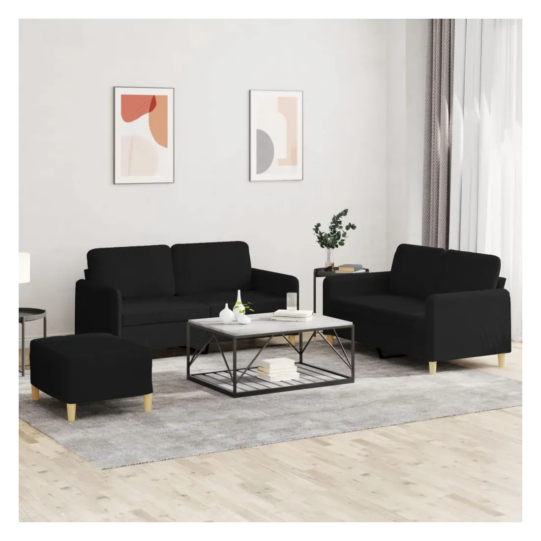 Cet ensemble de canapés est un excellent endroit pour discuter, lire, regarder la télévision ou simplement vous détendre. Il est destiné à être un point central de votre maison. Tissu durable : le tissu présente un aspect simple et épuré tout en restant respirant et durable.Structure robuste et stable : la structure en contreplaqué et en métal du canapé assure robustesse et stabilité.Expérience d'assise confortable : le canapé est très confortable avec le siège, les accoudoirs et les coussins de dossier bien rembourrés.Pouf polyvalent : ce repose-pied convient pour reposer vos pieds lorsque vous êtes allongé dans un canapé ou pour vous offrir un siège supplémentaire dans votre pièce. De plus, le design simple et la taille compacte le rendent idéal pour presque tous vos espaces de vie.