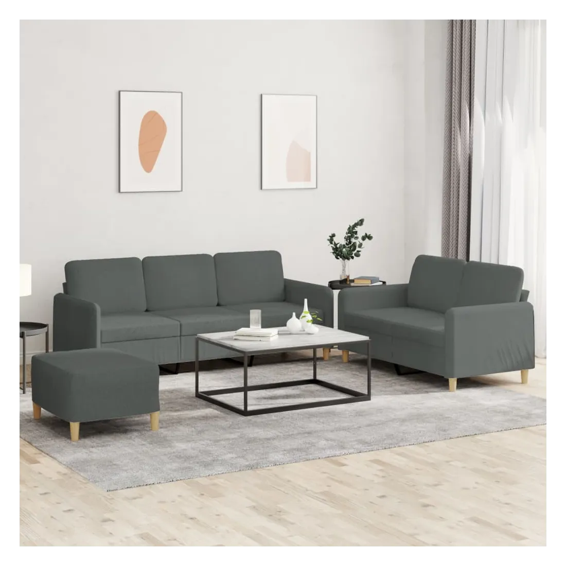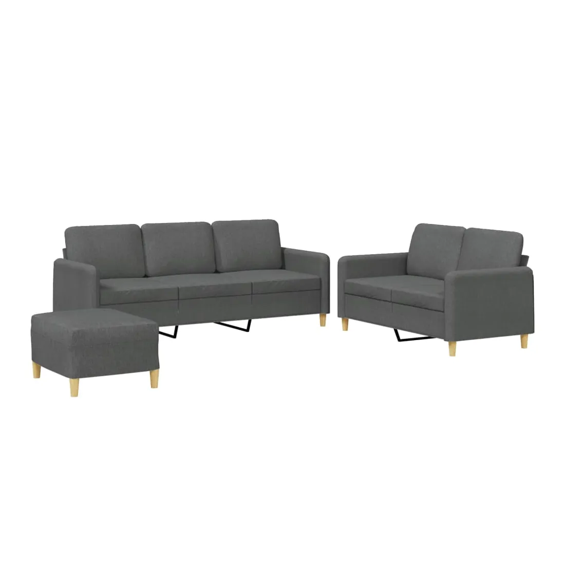 Cet ensemble de canapés est un excellent endroit pour discuter, lire, regarder la télévision ou simplement vous détendre. Il est destiné à être un point central de votre maison. Tissu durable : le tissu présente un aspect simple et épuré tout en restant respirant et durable.Structure robuste et stable : la structure en contreplaqué et en métal du canapé assure robustesse et stabilité.Expérience d'assise confortable : le canapé est très confortable avec le siège, les accoudoirs et les coussins de dossier bien rembourrés.Pouf polyvalent : ce repose-pied convient pour reposer vos pieds lorsque vous êtes allongé dans un canapé ou pour vous offrir un siège supplémentaire dans votre pièce. De plus, le design simple et la taille compacte le rendent idéal pour presque tous vos espaces de vie.
