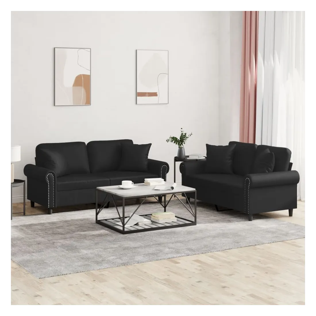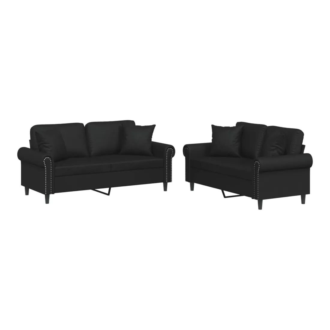 Cet ensemble de canapés est un excellent endroit pour discuter, lire, regarder la télévision ou simplement vous détendre. Il est destiné à être un point central de votre maison. Similicuir durable : le similicuir est un matériau très durable. Il est résistant aux taches, ce qui le rend facile à nettoyer avec un chiffon humide. La surface lisse donne également un aspect luxueux et la beauté du cuir véritable.Structure robuste et stable : la structure en contreplaqué et en métal du canapé assure robustesse et stabilité.Expérience d'assise confortable : le canapé est très confortable avec le siège, les accoudoirs et les oreillers de dossier bien rembourrés.Oreillers de canapé pratiques : ces oreillers décoratifs carrés non seulement embellissent votre décor mais ils peuvent également apporter un confort supplémentaire lorsque vous êtes assis ou allongé.
