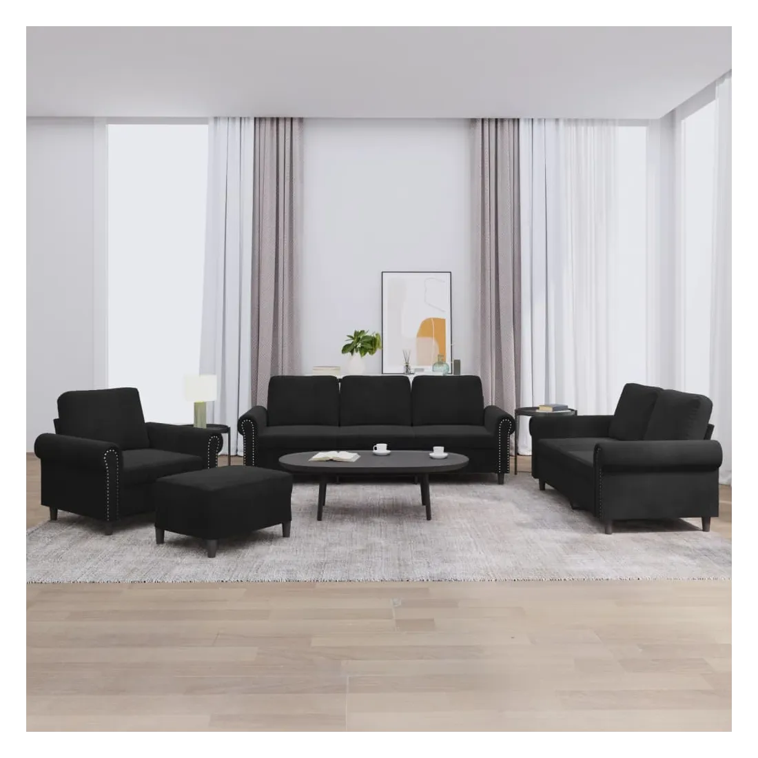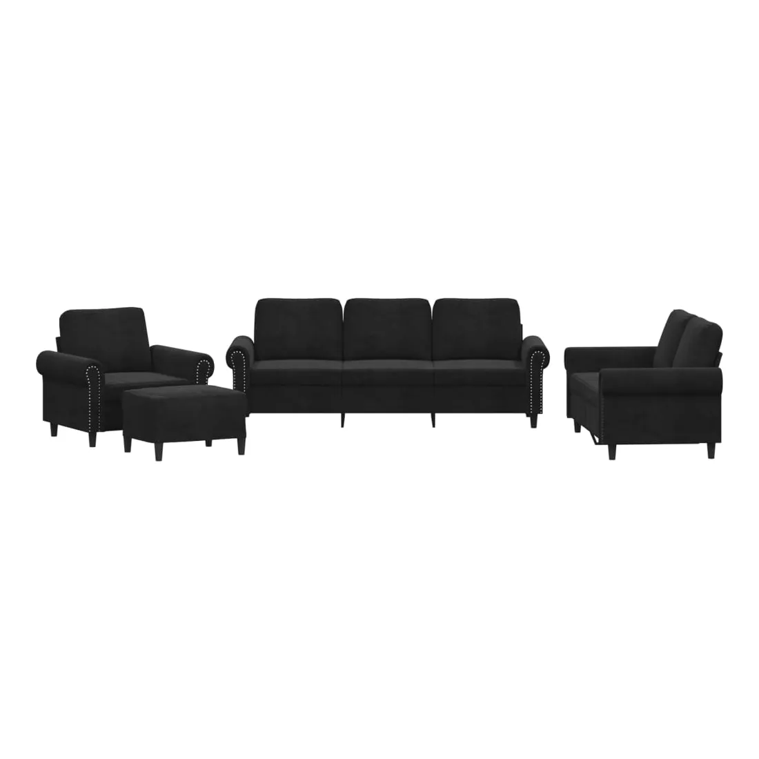 Cet ensemble de canapés est un excellent endroit pour discuter, lire, regarder la télévision ou simplement vous détendre. Il est destiné à être un point central de votre maison. Velours doux : le velours est un tissu doux et confortable, agréable au toucher.Structure robuste et stable : la structure en contreplaqué et en métal du canapé assure robustesse et stabilité.Expérience d'assise confortable : le canapé est très confortable avec le siège, les accoudoirs et les oreillers de dossier bien rembourrés.Pouf polyvalent : ce repose-pied convient pour reposer vos pieds lorsque vous êtes allongé dans un canapé ou pour vous offrir un siège supplémentaire dans votre pièce. De plus, le design simple et la taille compacte le rendent idéal pour presque tous vos espaces de vie.