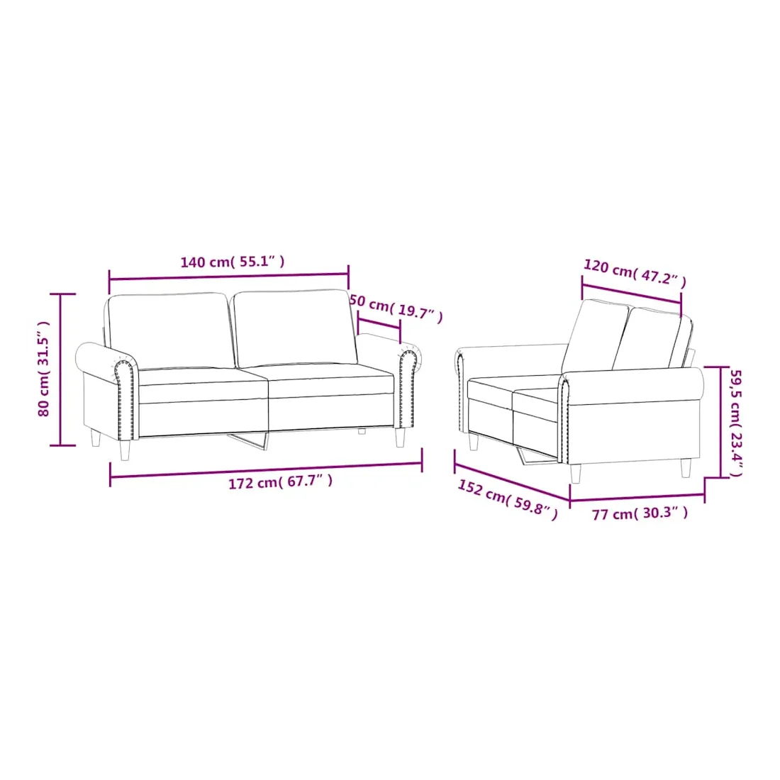 - Canapé à 2 places (140 cm) :