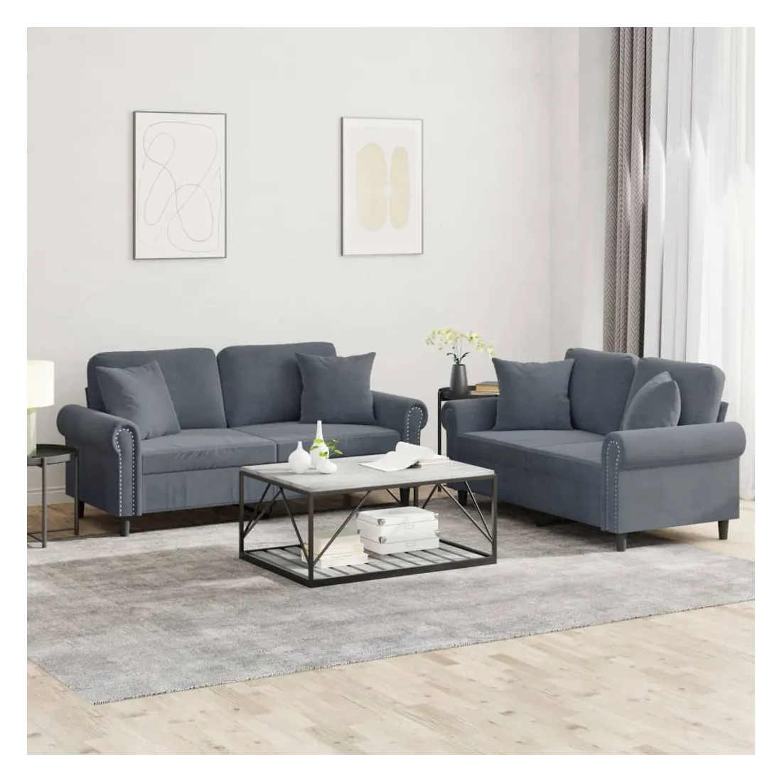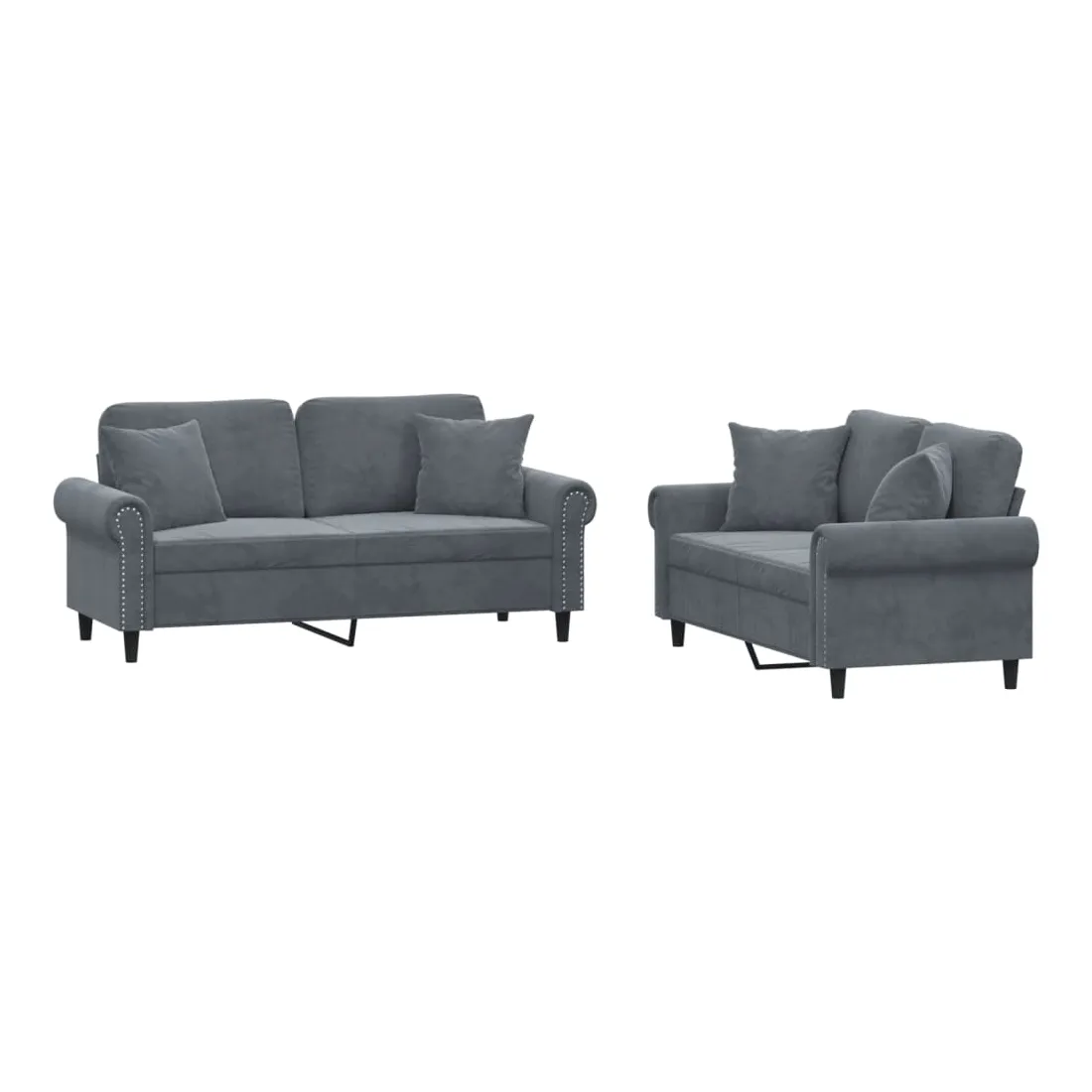 Cet ensemble de canapés est un excellent endroit pour discuter, lire, regarder la télévision ou simplement vous détendre. Il est destiné à être un point central de votre maison. Velours doux : le velours est un tissu doux et confortable, agréable au toucher.Structure robuste et stable : la structure en contreplaqué et en métal du canapé assure robustesse et stabilité.Expérience d'assise confortable : le canapé est très confortable avec le siège, les accoudoirs et les oreillers de dossier bien rembourrés.Oreillers de canapé pratiques : ces oreillers décoratifs carrés non seulement embellissent votre décor mais ils peuvent également apporter un confort supplémentaire lorsque vous êtes assis ou allongé.