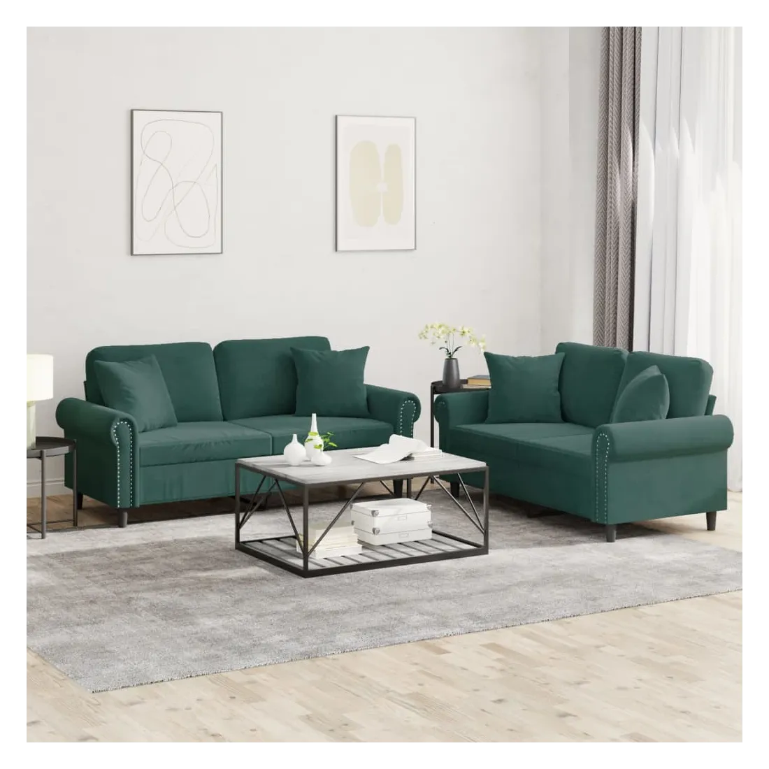 Cet ensemble de canapés est un excellent endroit pour discuter, lire, regarder la télévision ou simplement vous détendre. Il est destiné à être un point central de votre maison. Velours doux : le velours est un tissu doux et confortable, agréable au toucher.Structure robuste et stable : la structure en contreplaqué et en métal du canapé assure robustesse et stabilité.Expérience d'assise confortable : le canapé est très confortable avec le siège, les accoudoirs et les oreillers de dossier bien rembourrés.Oreillers de canapé pratiques : ces oreillers décoratifs carrés non seulement embellissent votre décor mais ils peuvent également apporter un confort supplémentaire lorsque vous êtes assis ou allongé.