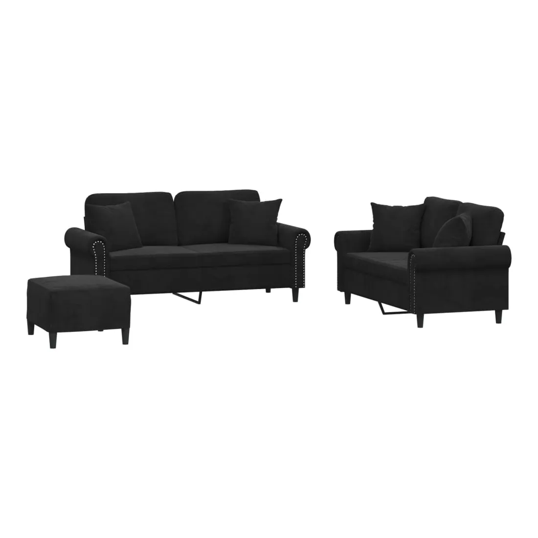Cet ensemble de canapés est un excellent endroit pour discuter, lire, regarder la télévision ou simplement vous détendre. Il est destiné à être un point central de votre maison. Velours doux : le velours est un tissu doux et confortable, agréable au toucher.Structure robuste et stable : la structure en contreplaqué et en métal du canapé assure robustesse et stabilité.Expérience d'assise confortable : le canapé est très confortable avec le siège, les accoudoirs et les oreillers de dossier bien rembourrés.Oreillers de canapé pratiques : ces oreillers décoratifs carrés non seulement embellissent votre décor mais ils peuvent également apporter un confort supplémentaire lorsque vous êtes assis ou allongé.Pouf polyvalent : ce repose-pied convient pour reposer vos pieds lorsque vous êtes allongé dans un canapé, ou pour vous offrir un siège supplémentaire dans votre pièce. De plus, le design simple et la taille compacte le rendent idéal pour presque tous vos espaces de vie.