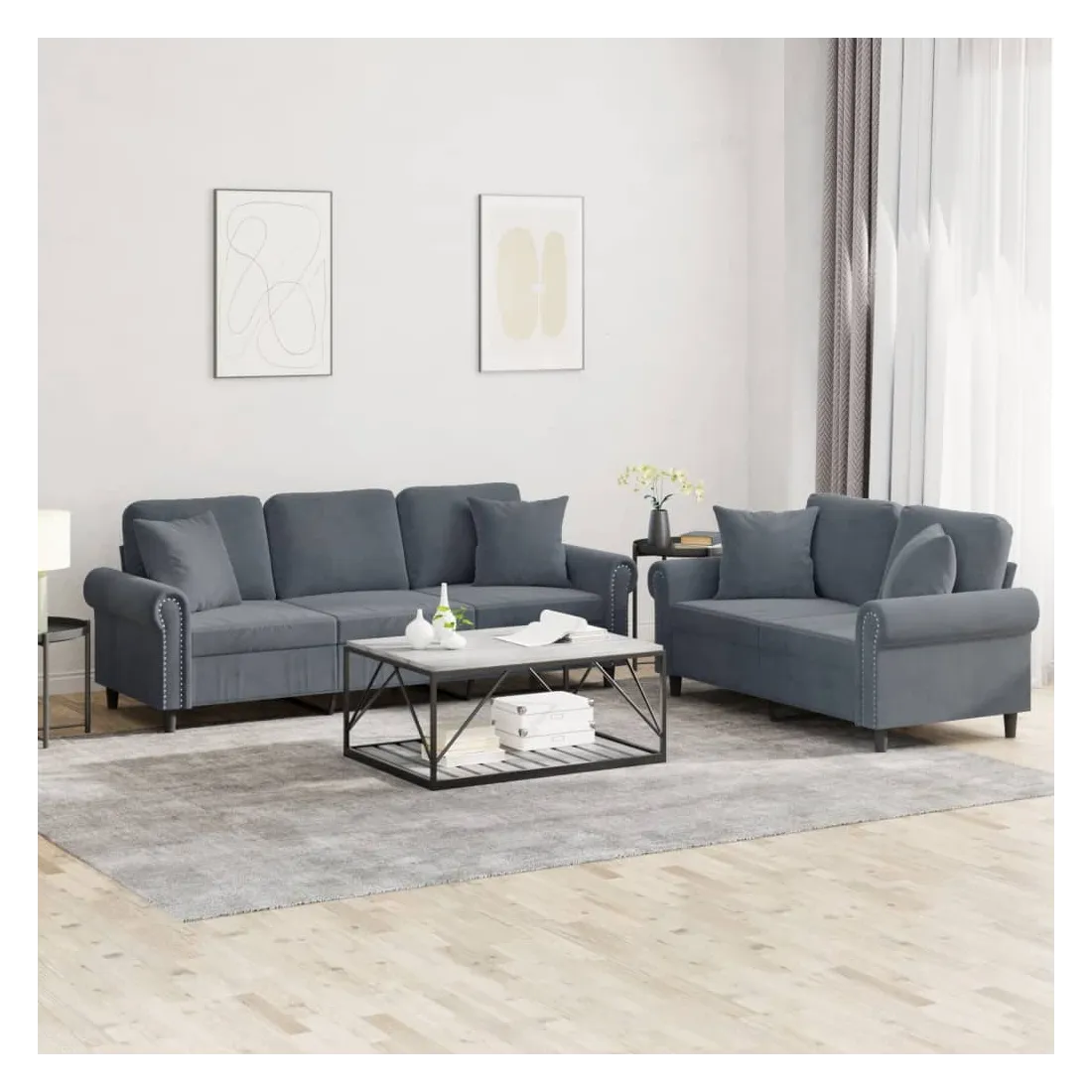 Cet ensemble de canapés est un excellent endroit pour discuter, lire, regarder la télévision ou simplement vous détendre. Il est destiné à être un point central de votre maison. Velours doux : le velours est un tissu doux et confortable, agréable au toucher.Structure robuste et stable : la structure en contreplaqué et en métal du canapé assure robustesse et stabilité.Expérience d'assise confortable : le canapé est très confortable avec le siège, les accoudoirs et les oreillers de dossier bien rembourrés.Oreillers de canapé pratiques : ces oreillers décoratifs carrés non seulement embellissent votre décor mais ils peuvent également apporter un confort supplémentaire lorsque vous êtes assis ou allongé.