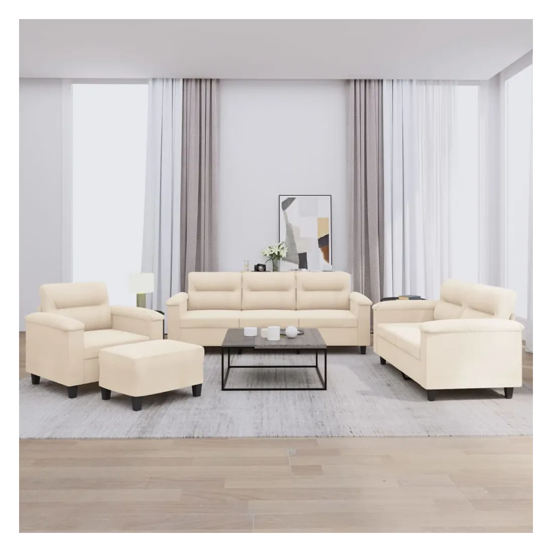 Ensemble de canapés 4 pcs avec coussins beige tissu microfibre