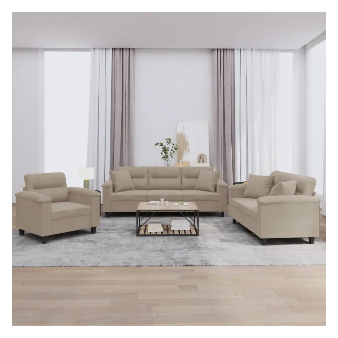 Ensemble de canapés 3 pcs avec coussins Taupe Tissu microfibre