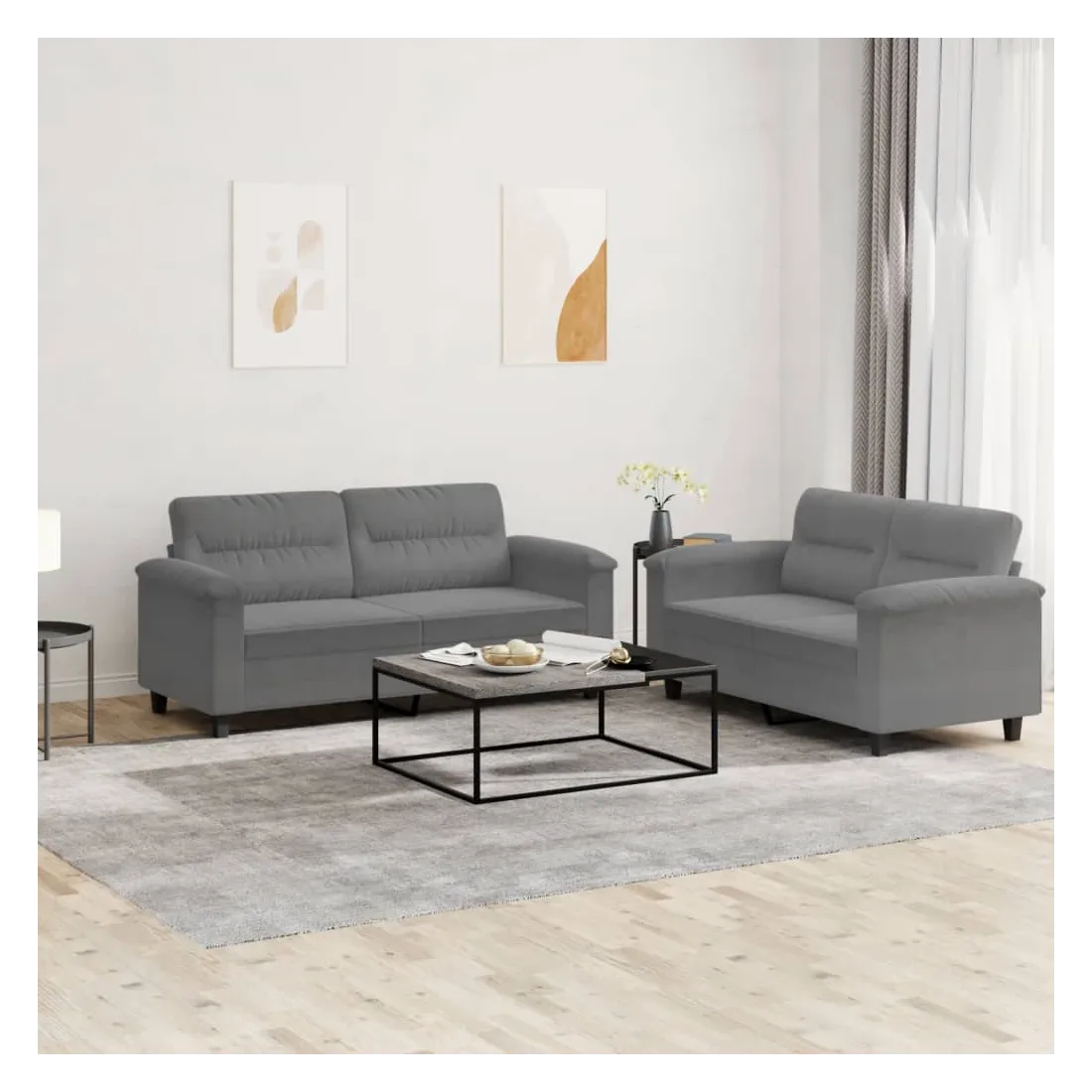 Cet ensemble de canapés est un excellent endroit pour discuter, lire, regarder la télévision ou simplement vous détendre. Il est destiné à être un point central de votre maison. Microfibre résistant : le microfibre est un tissu synthétique composé de fibres ultra-fines, particulièrement résistantes aux taches. Le tissu en microfibre est un excellent choix pour le rembourrage des meubles en raison de sa durabilité et de son nettoyage facile.Structure robuste et stable : la structure en contreplaqué et en métal du canapé assure robustesse et stabilité.Expérience d'assise confortable : le canapé est très confortable avec le siège, les accoudoirs et les oreillers de dossier bien rembourrés.