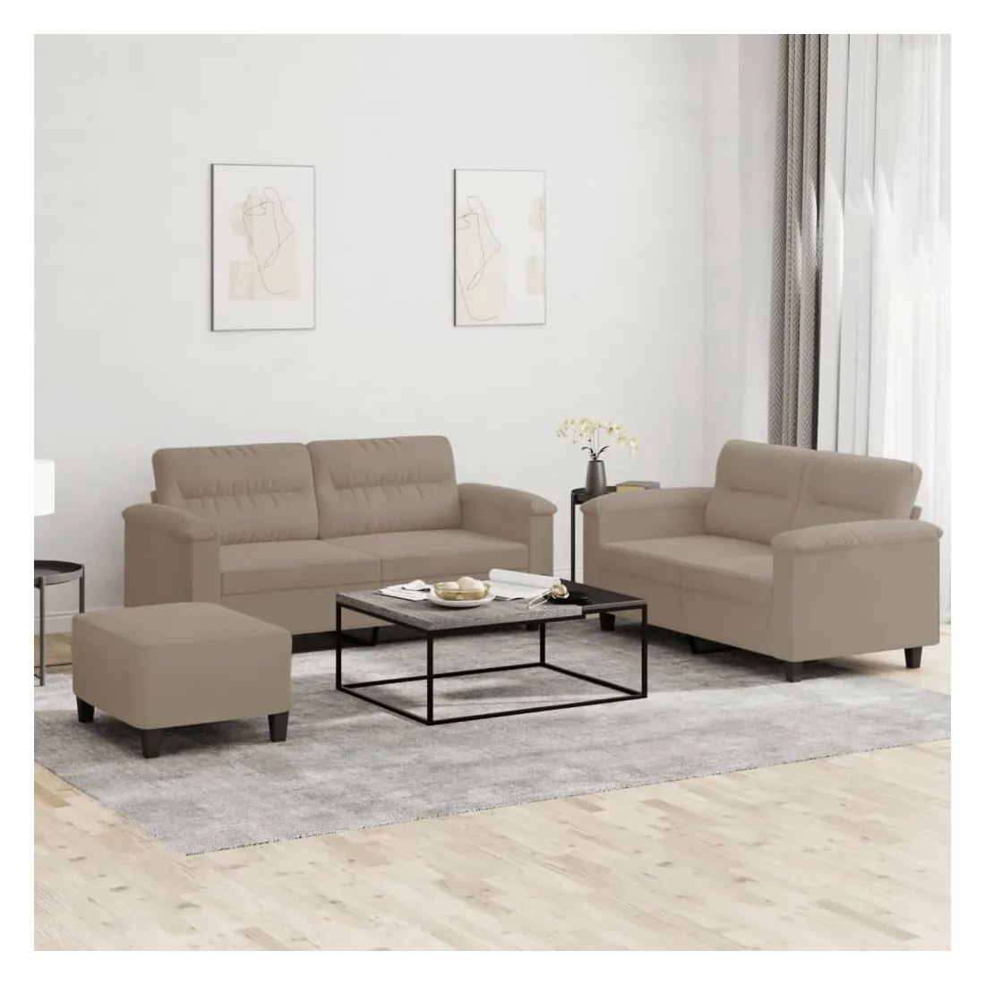 Ensemble de canapés 3 pcs avec coussins taupe tissu microfibre