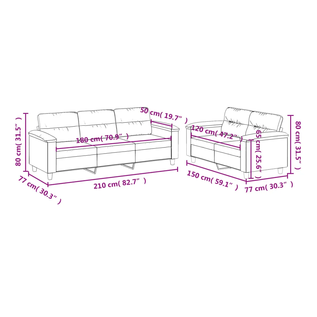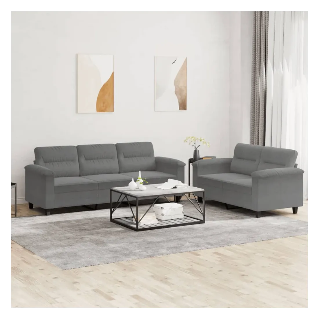 Cet ensemble de canapés est un excellent endroit pour discuter, lire, regarder la télévision ou simplement vous détendre. Il est destiné à être un point central de votre maison. Microfibre résistant : le microfibre est un tissu synthétique composé de fibres ultra-fines, particulièrement résistantes aux taches. Le tissu en microfibre est un excellent choix pour le rembourrage des meubles en raison de sa durabilité et de son nettoyage facile.Structure robuste et stable : la structure en contreplaqué et en métal du canapé assure robustesse et stabilité.Expérience d'assise confortable : le canapé est très confortable avec le siège, les accoudoirs et les oreillers de dossier bien rembourrés.