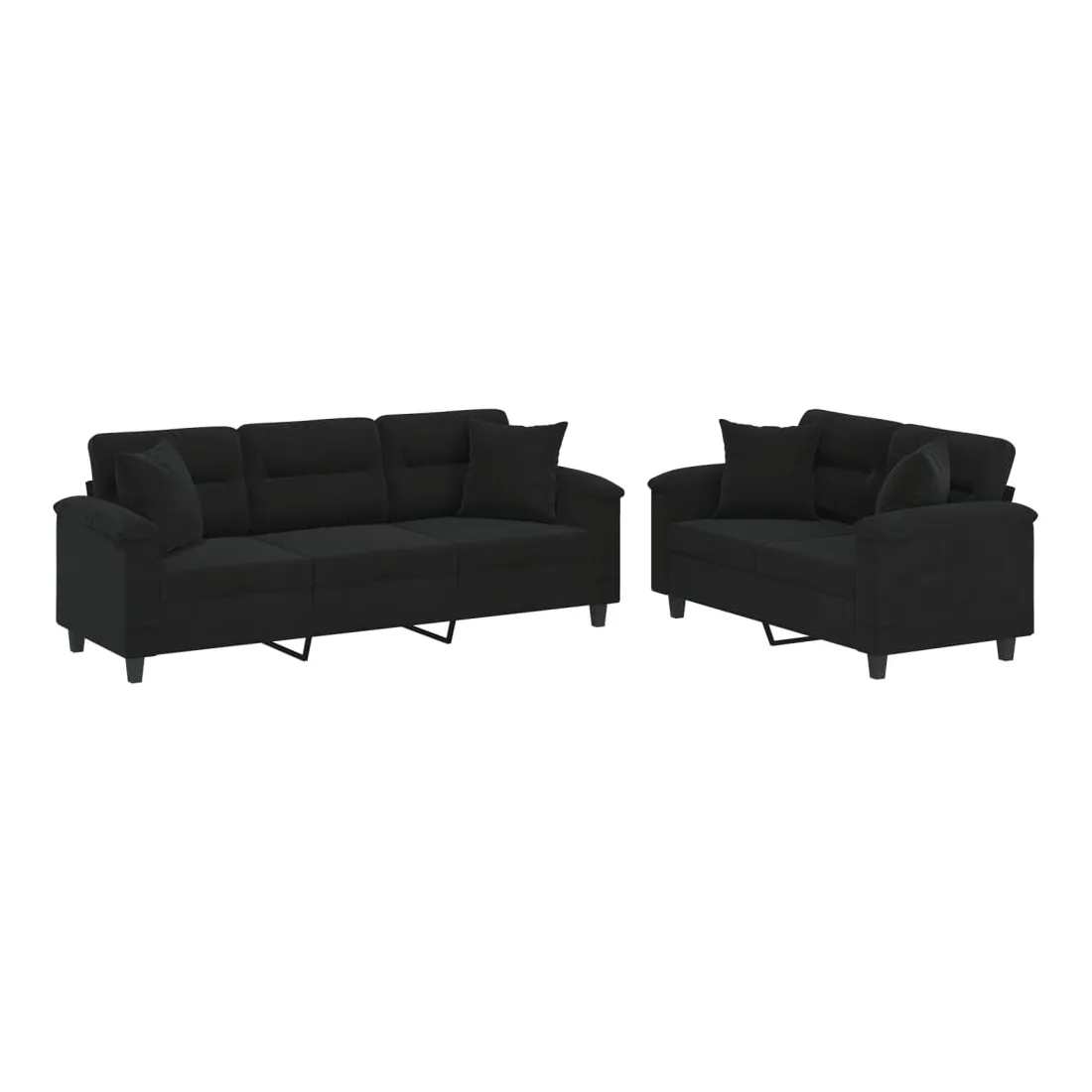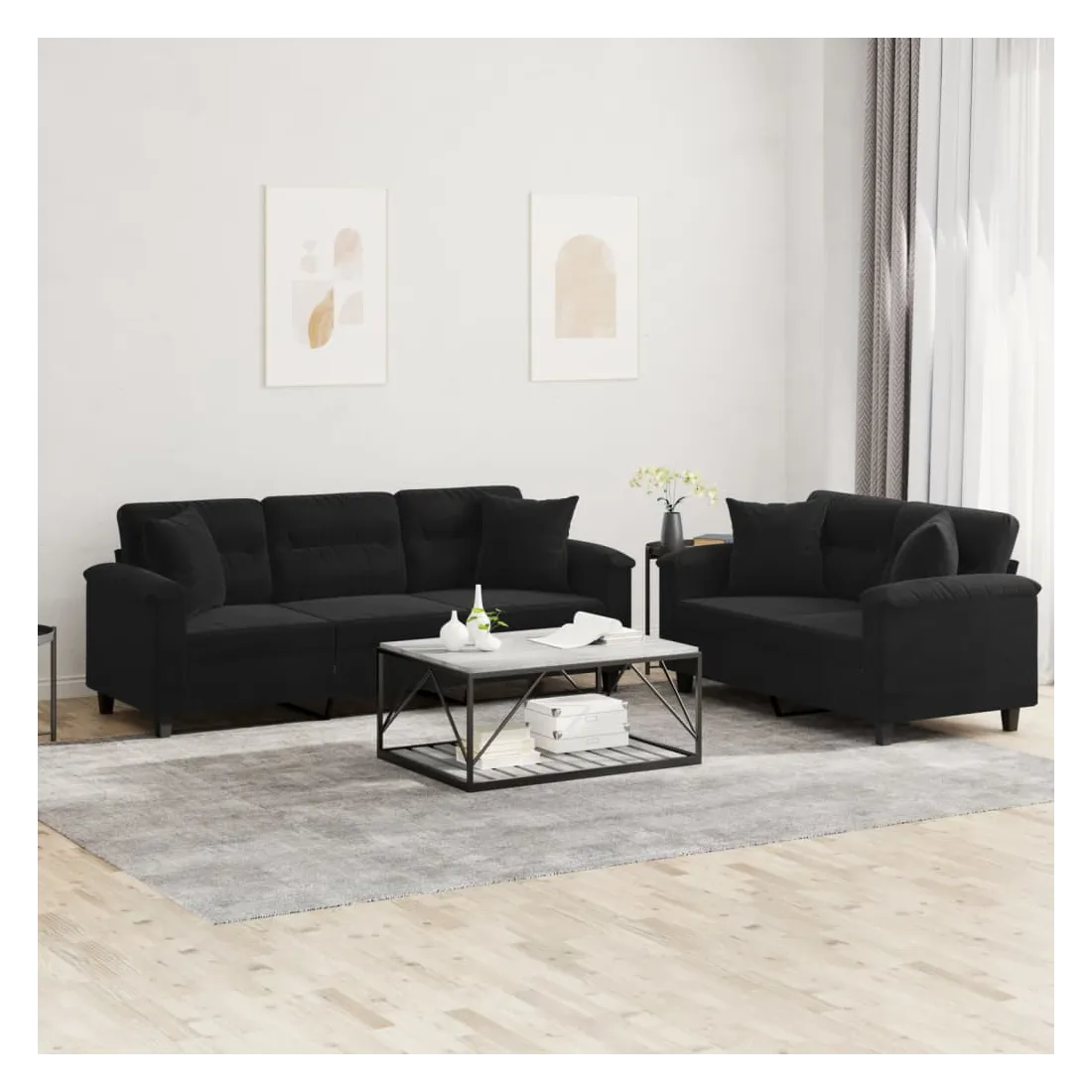 Cet ensemble de canapés est un excellent endroit pour discuter, lire, regarder la télévision ou simplement vous détendre. Il est destiné à être un point central de votre maison. Microfibre résistant : le microfibre est un tissu synthétique composé de fibres ultra-fines, particulièrement résistantes aux taches. Le tissu en microfibre est un excellent choix pour le rembourrage des meubles en raison de sa durabilité et de son nettoyage facile.Structure robuste et stable : la structure en contreplaqué et en métal du canapé assure robustesse et stabilité.Expérience d'assise confortable : le canapé est très confortable avec le siège, les accoudoirs et les oreillers de dossier bien rembourrés.Oreillers de canapé pratiques : ces oreillers décoratifs carrés non seulement embellissent votre décor mais ils peuvent également apporter un confort supplémentaire lorsque vous êtes assis ou allongé.