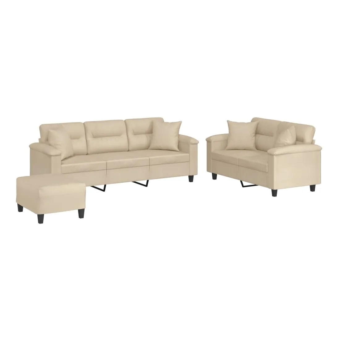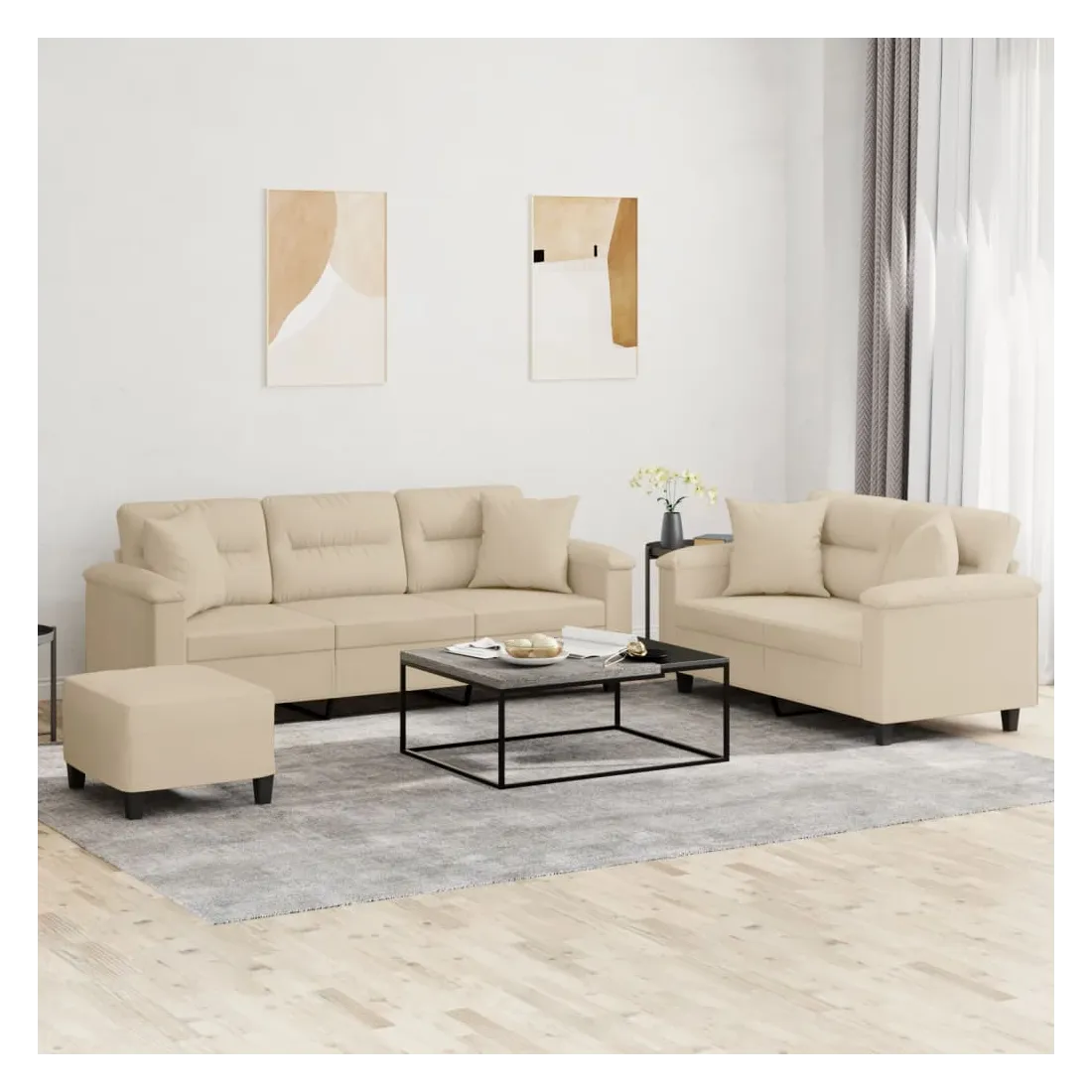 Ensemble de canapés 3 pcs avec coussins Crème Tissu microfibre