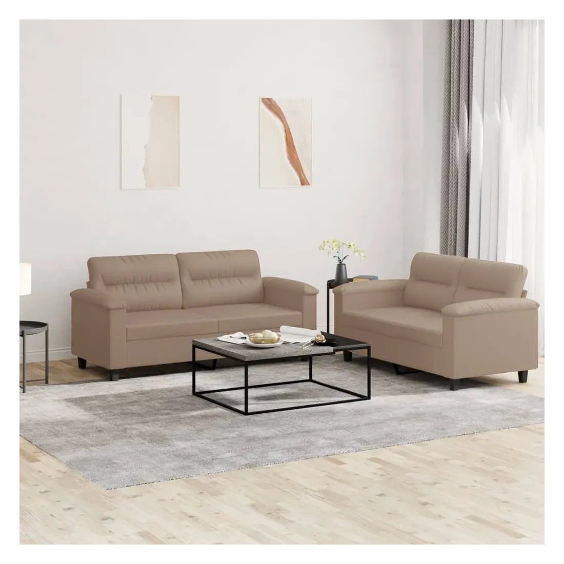Ensemble de canapés 2 pcs avec coussins Cappuccino Similicuir