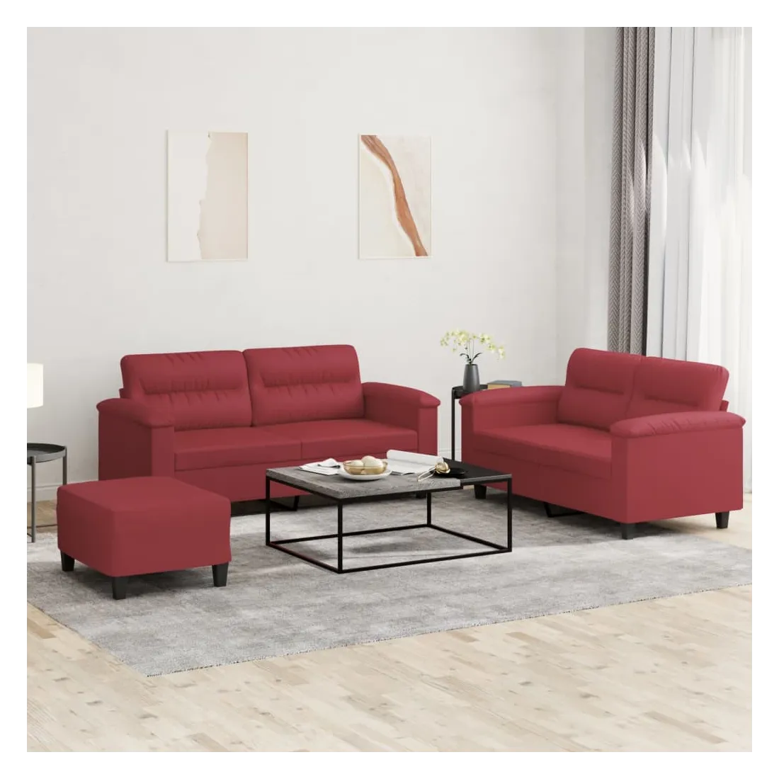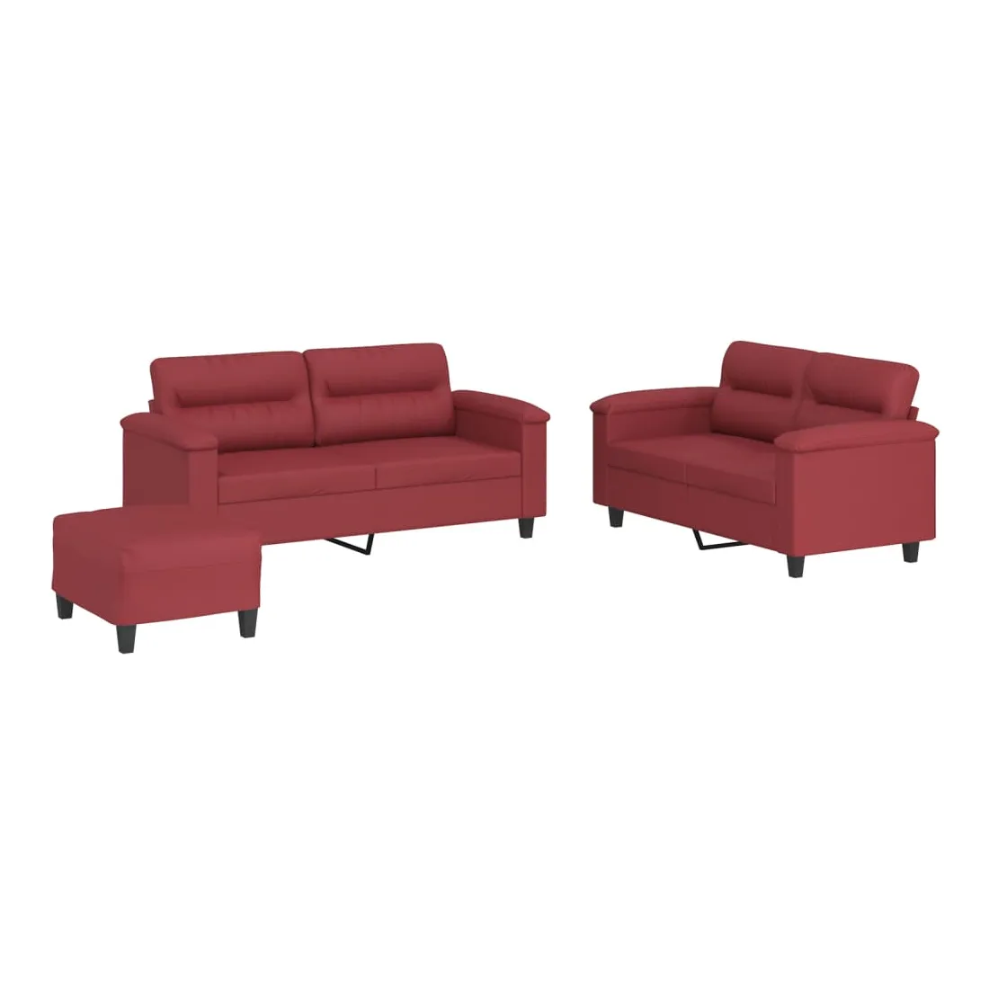 Cet ensemble de canapés est un excellent endroit pour discuter, lire, regarder la télévision ou simplement vous détendre. Il est destiné à être un point central de votre maison. Similicuir durable : le similicuir est un matériau très durable. Il est résistant aux taches, ce qui le rend facile à nettoyer avec un chiffon humide. La surface lisse donne également un aspect luxueux et la beauté du cuir véritable.Structure robuste et stable : la structure en contreplaqué et en métal du canapé assure robustesse et stabilité.Expérience d'assise confortable : le canapé est très confortable avec le siège, les accoudoirs et les oreillers de dossier bien rembourrés.Pouf polyvalent : ce repose-pied convient pour reposer vos pieds lorsque vous êtes allongé dans un canapé, ou pour vous offrir un siège supplémentaire dans votre pièce. De plus, le design simple et la taille compacte le rendent idéal pour presque tous vos espaces de vie.