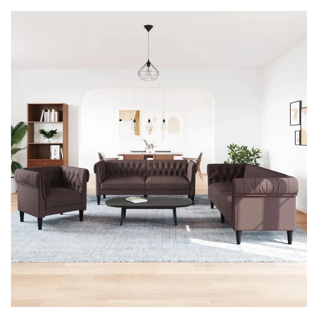 Ensemble de canapés 3 pcs marron foncé tissu