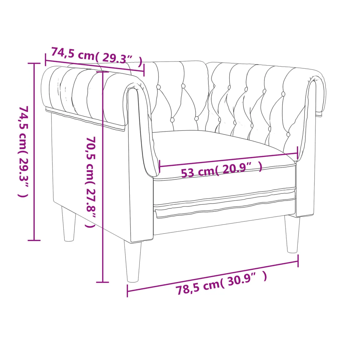 - Dimensions totales : 78,5 x 74,5 x 74,5 cm (l x P x H)