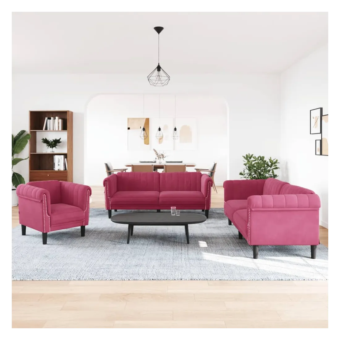 Cet ensemble de canapés est un excellent endroit pour discuter, lire, regarder la télévision ou simplement vous détendre. Il est destiné à être un point central de votre maison. Velours doux : le velours est un tissu doux et confortable, agréable au toucher. Expérience de siège confortable : la chaise de canapé est très confortable grâce à l'assise, aux accoudoirs et au dossier très rembourrés. Pieds de soutien : le canapé rembourré est soutenu par des pieds robustes, qui assurent sa stabilité, sa sécurité et sa fermeté. Design accrocheur : doté d'un design simple mais moderne, ce siège de salon est destiné à attirer l'attention dans votre pièce.