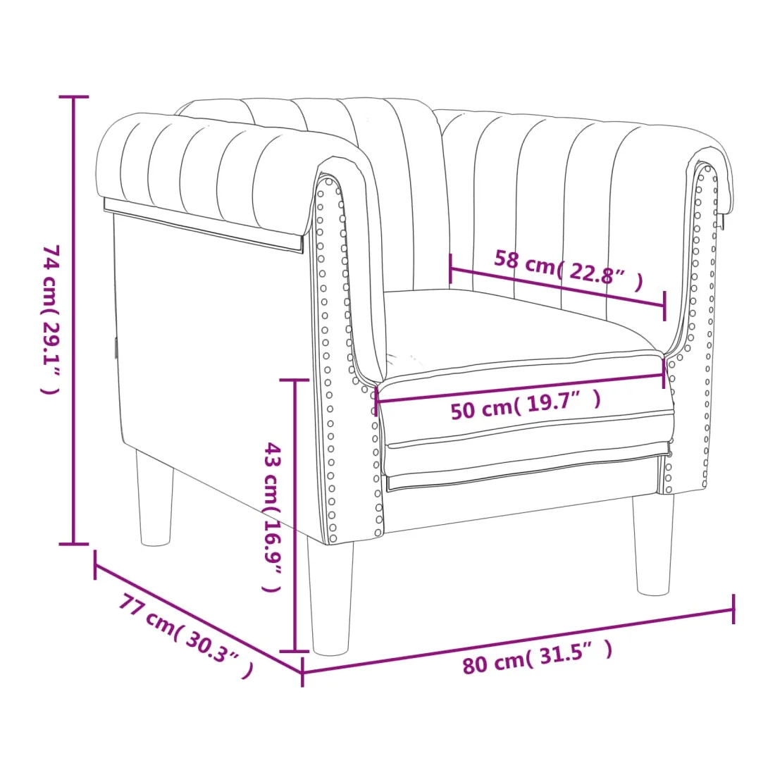 - Hauteur des accoudoirs à partir du sol : 74 cm